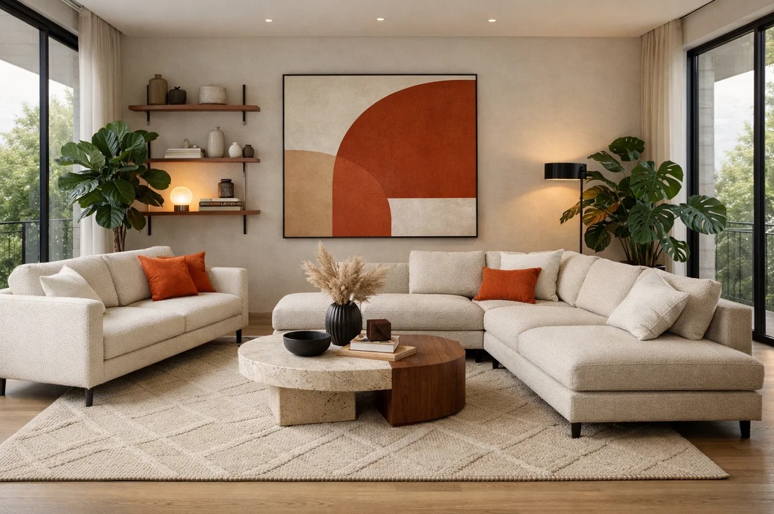 🟢 Важно: яркие диваны не вышли из моды, но теперь они используются как акцент, а не доминанта всего пространства.