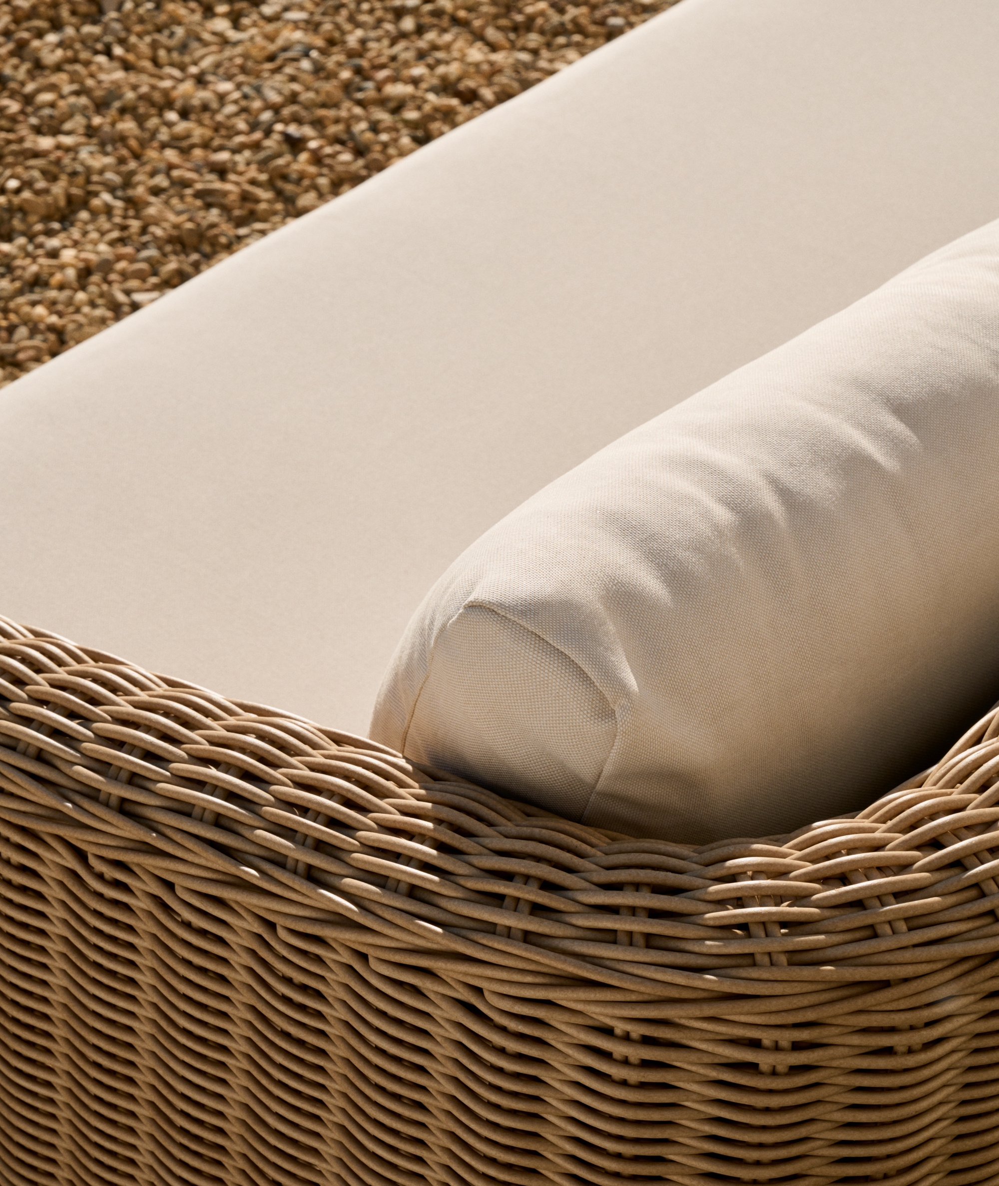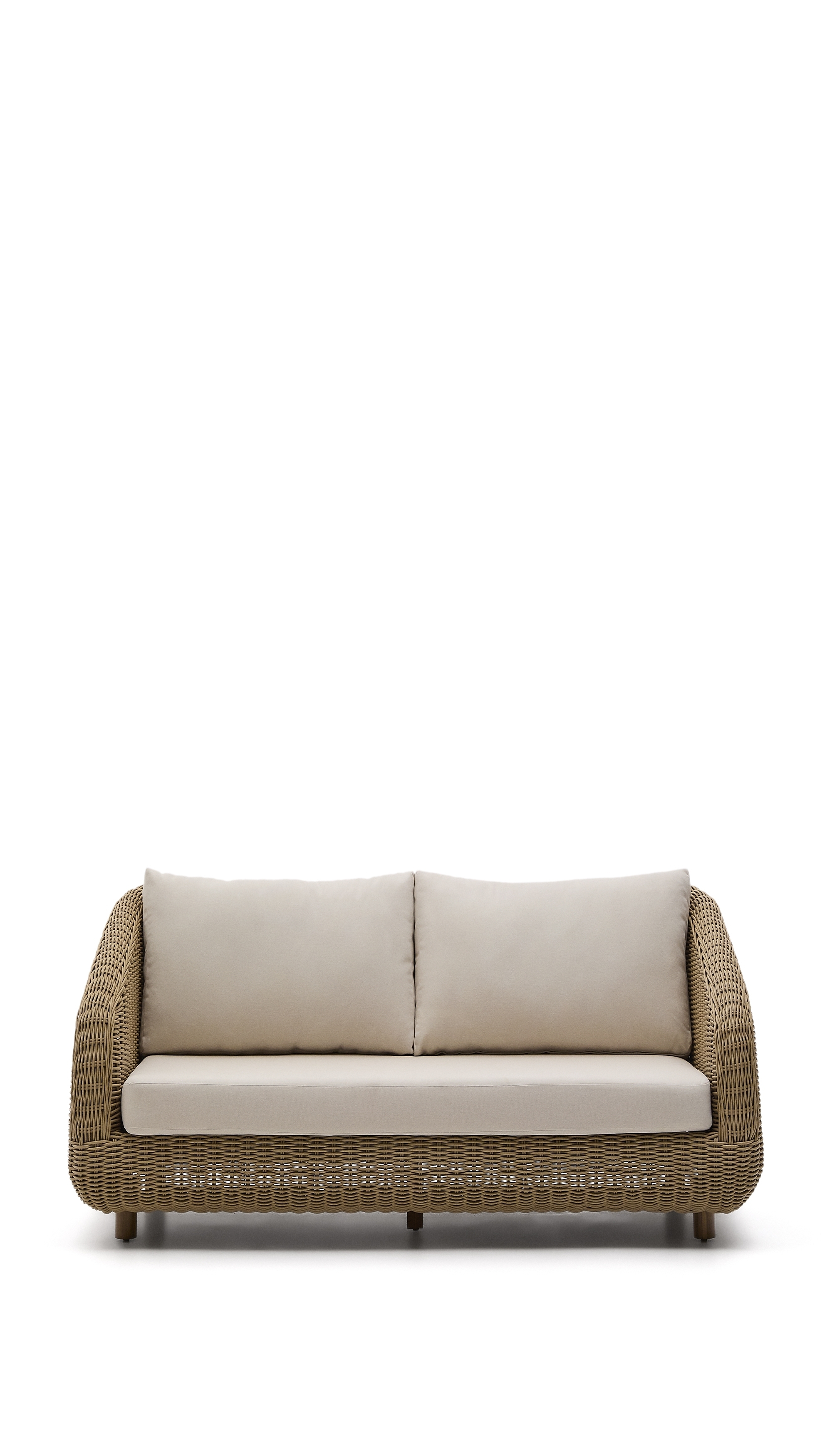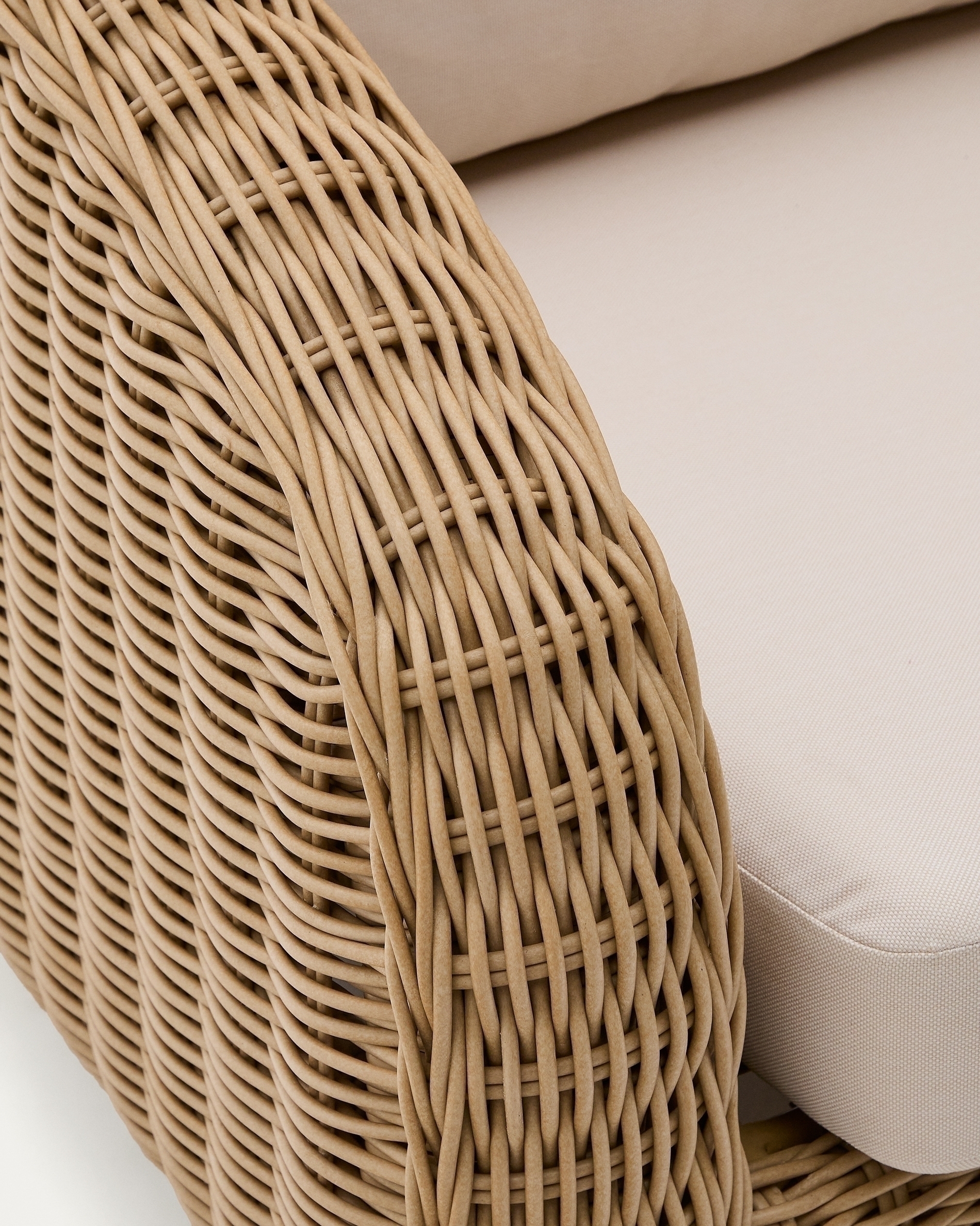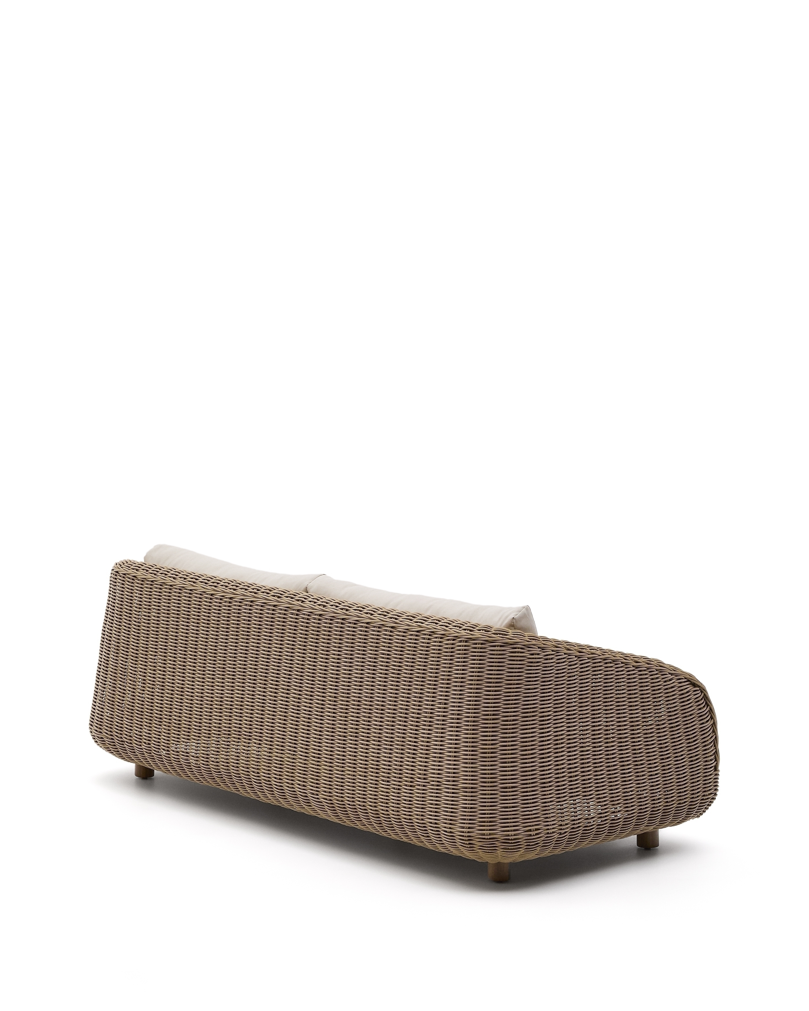Диван Meria сочетает себе эстетичный дизайн и практичность искусственного ротанга. Благодаря устойчивости к погодным условиям, вы сможете поставить диван на открытой террасе и наслаждаться удобством объемных подушек на свежем воздухе.