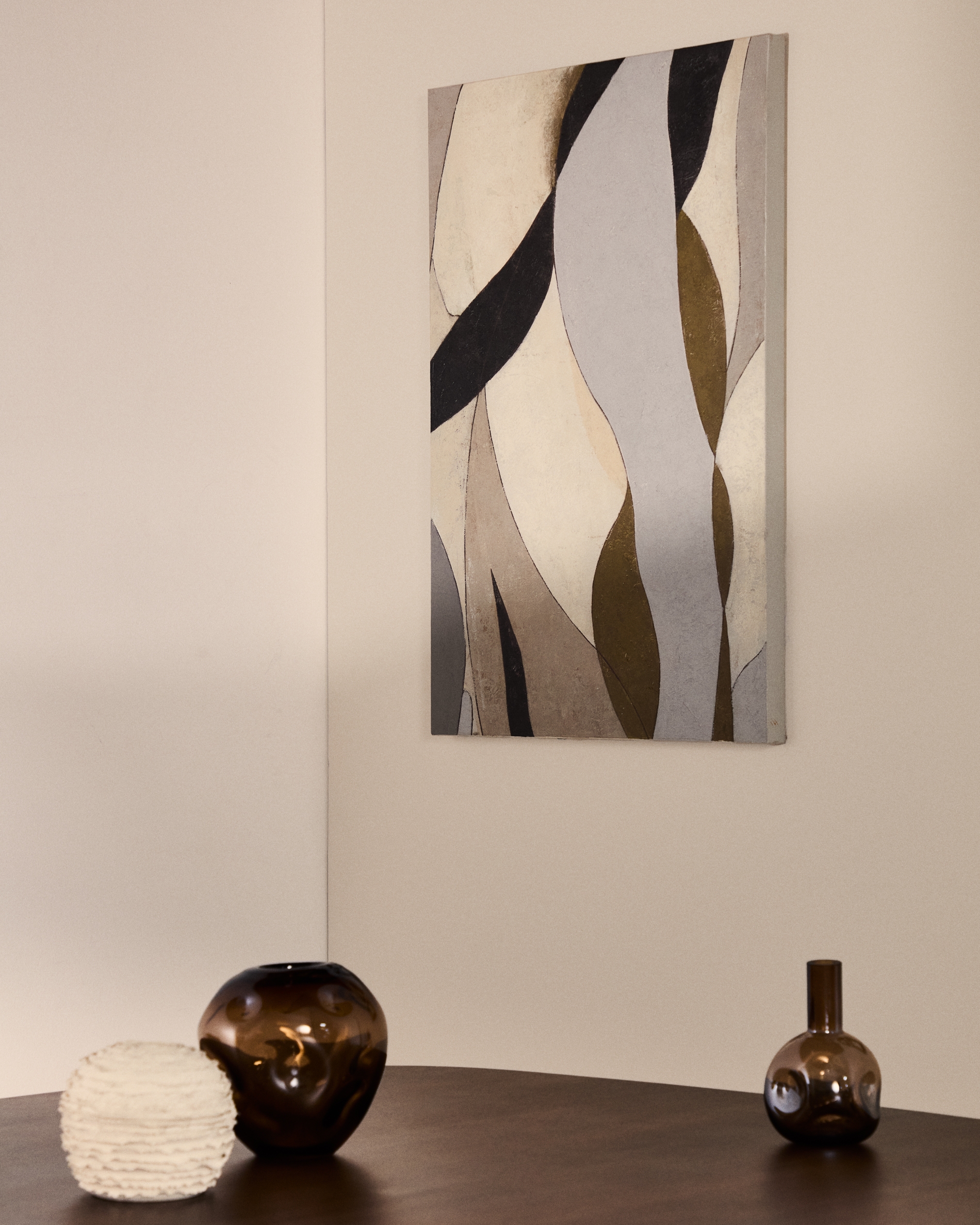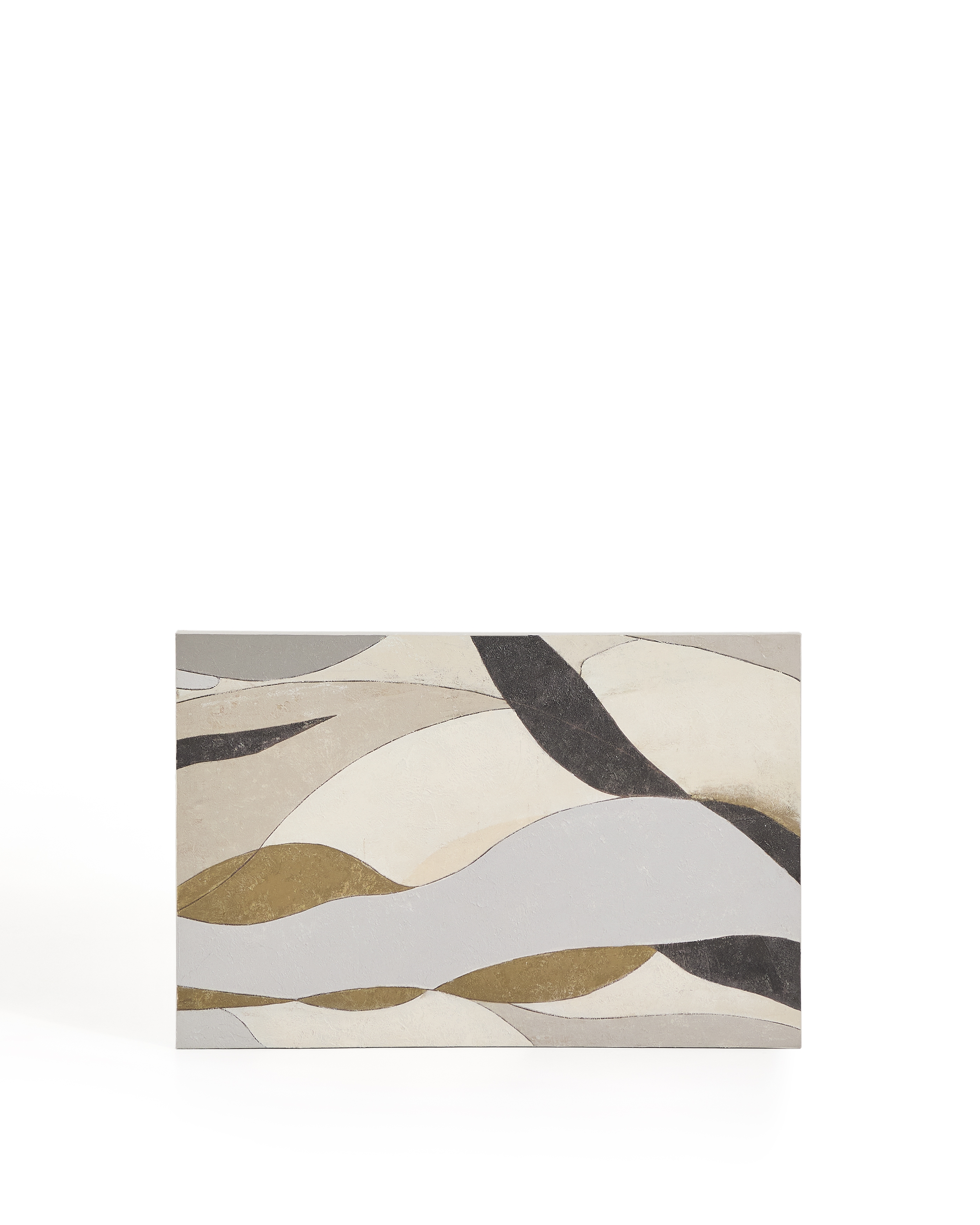 Это абстрактное полотно в серо-горчичных тонах привнесёт движение и изысканность в любой интерьер. Игра плавных линий и органических форм переплетается, создавая сбалансированную композицию, которая придаёт помещению спокойствие и элегантность. Оттенки серого и горчичного цвета сочетаются с разной интенсивностью, создавая визуальную глубину и облегчая интеграцию в современные гостиные, спальни или офисы.