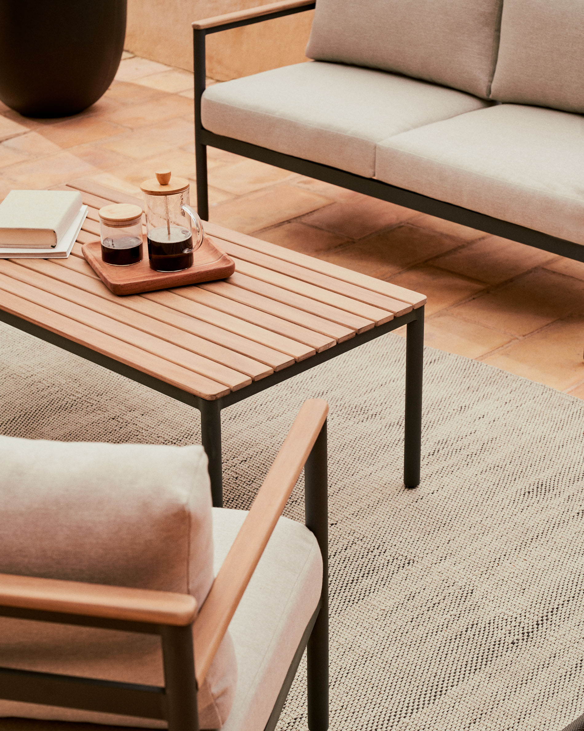 Набор Aiguafreda состоит из 2-местного дивана, 2 стульев и журнального столика.