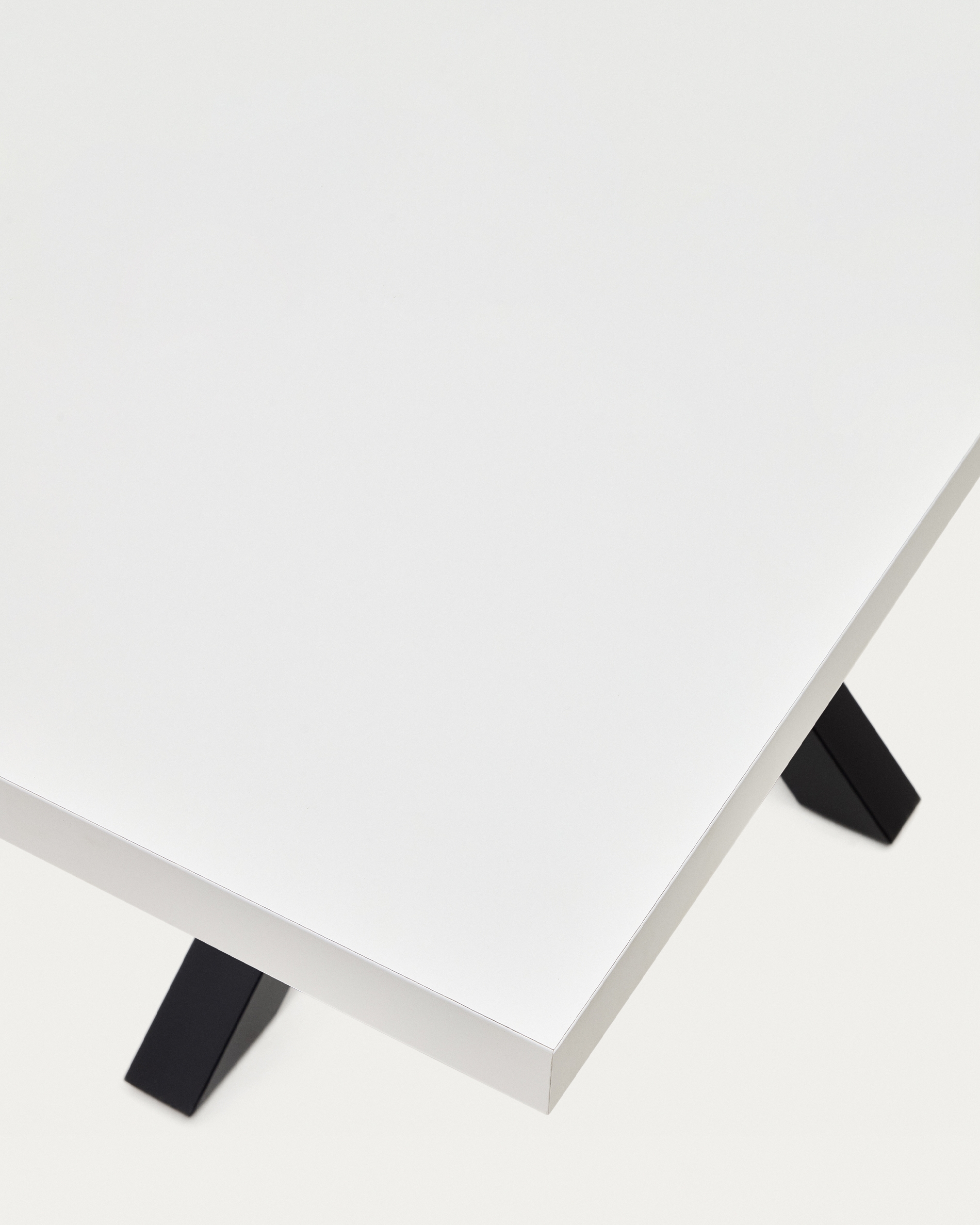 Обеденный стол с эпоксидной краской стальные ножки и белый лакированный верх.