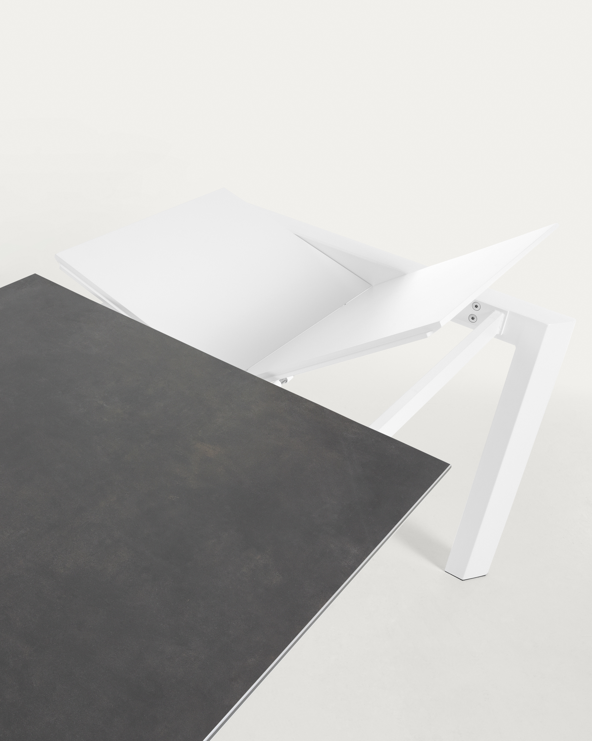 Стол Atta – это победа инженерной мысли. Так мастерски спрятать выдвижной механизм и замаскировать его под тонкой столешницей смогут только профессионалы. Керамика – точно подобранный материал, который делает изделие эффектным, даже несмотря на принадлежность к минимализму.