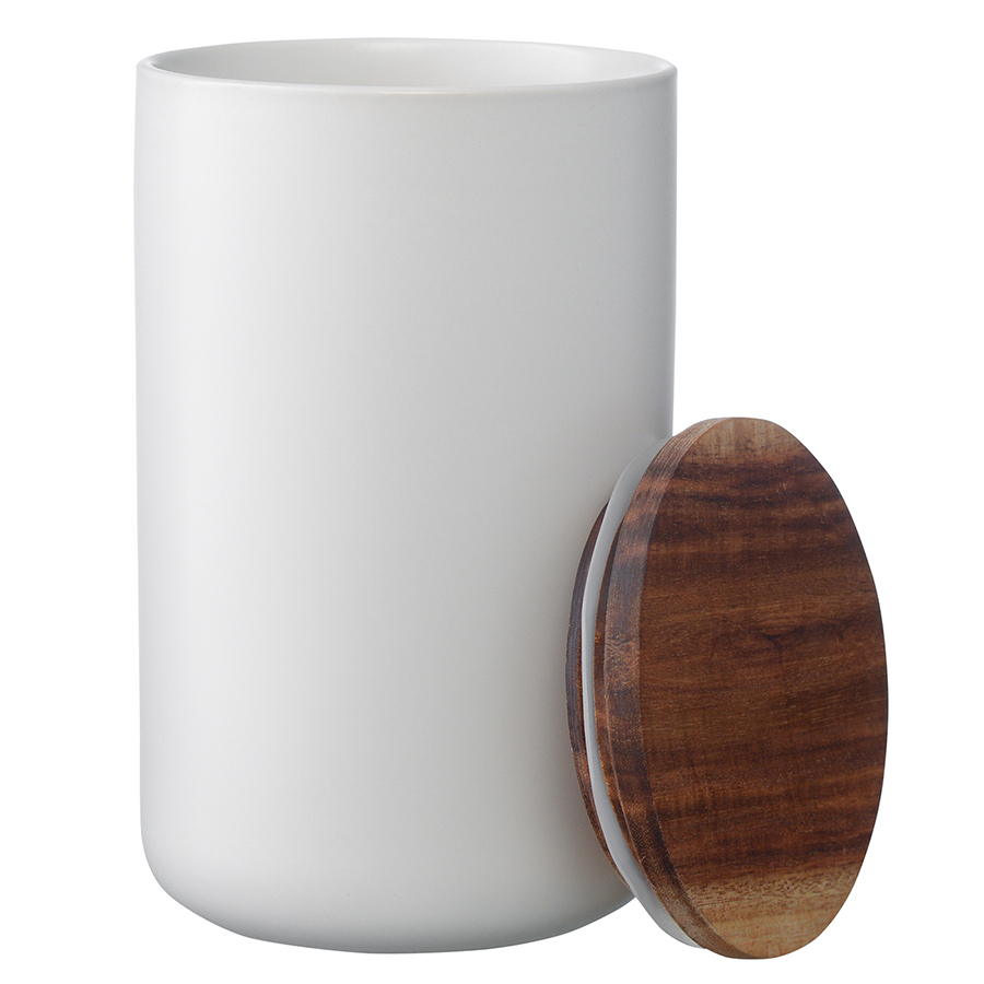 Материалы: каменная керамика, акация, силикон. Размеры: 10х10х17 см. Объем: 750 мл. Цвет: белый.