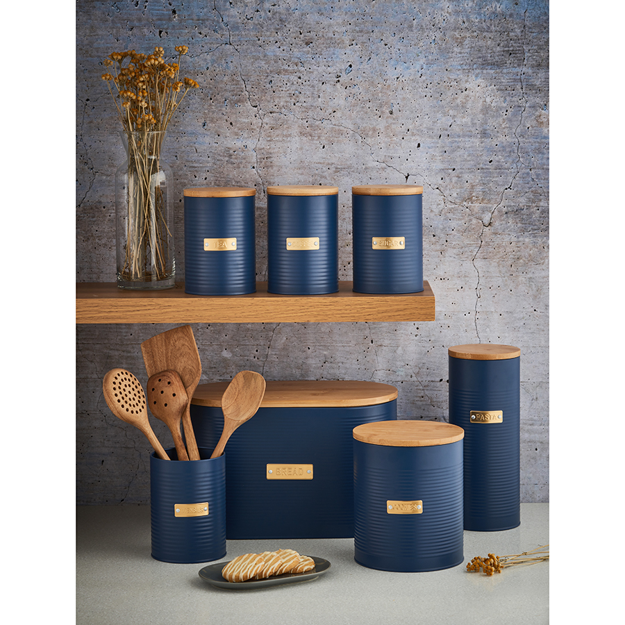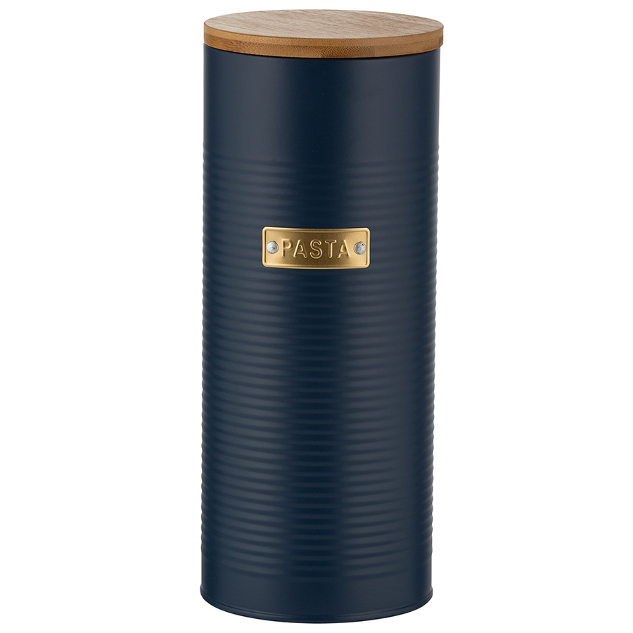 Банка для пасты из коллекции Otto – удобное решение для хранения сыпучих продуктов и стильный элемент кухонного интерьера. Эргономичный контейнер выполнен из прочной, устойчивой к коррозии и деформации углеродистой стали. Плотно прилегающая бамбуковая крышка с силиконовым уплотнителем защищает содержимое банки от заветривания и отсыревания. Рельефная поверхность и красивое сочетание золотистого декора с матовым покрытием насыщенного синего цвета делает дизайн интересным. Такая посуда отлично вписывается в интерьер, оформленный в классическом и современном стиле.