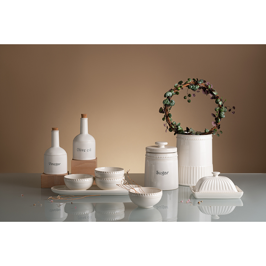 Банка для сахара белого цвета из коллекции Kitchen Spirit поможет навести порядок на кухне и выигрышно дополнит любой интерьер. Посуда из фарфора с дизайном в рустикальном стиле прекрасно гармонирует с предметами сервировки из стекла, керамики, бамбука. Лаконичный фактурный декор в сочетании с глянцевой глазурью обеспечивает изделию презентабельный вид. Экологически чистый и практичный материал отличается прочностью, устойчивостью к сколам, легко моется. Все предметы из коллекции Kitchen Spirit отлично комбинируются между собой.