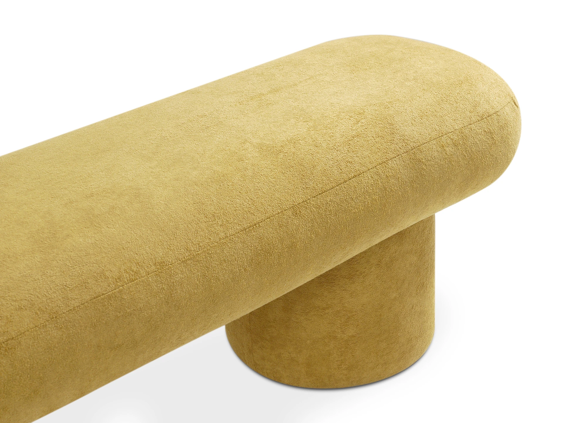 Банкетка BLOOM — функциональный предмет мебели с лаконичным характером. Простая архитектура рисует спокойный силуэт, напоминающий скамью. В фокусе внимания современные акценты: плавные линии, закругленные детали, эргономика. Мягкое овальное сиденье установлено на цилиндрические опоры. Каркас выполнен из массива дерева, обивка — велюр. Материал отличается износостойкостью, тактильностью и привлекательным внешним видом.