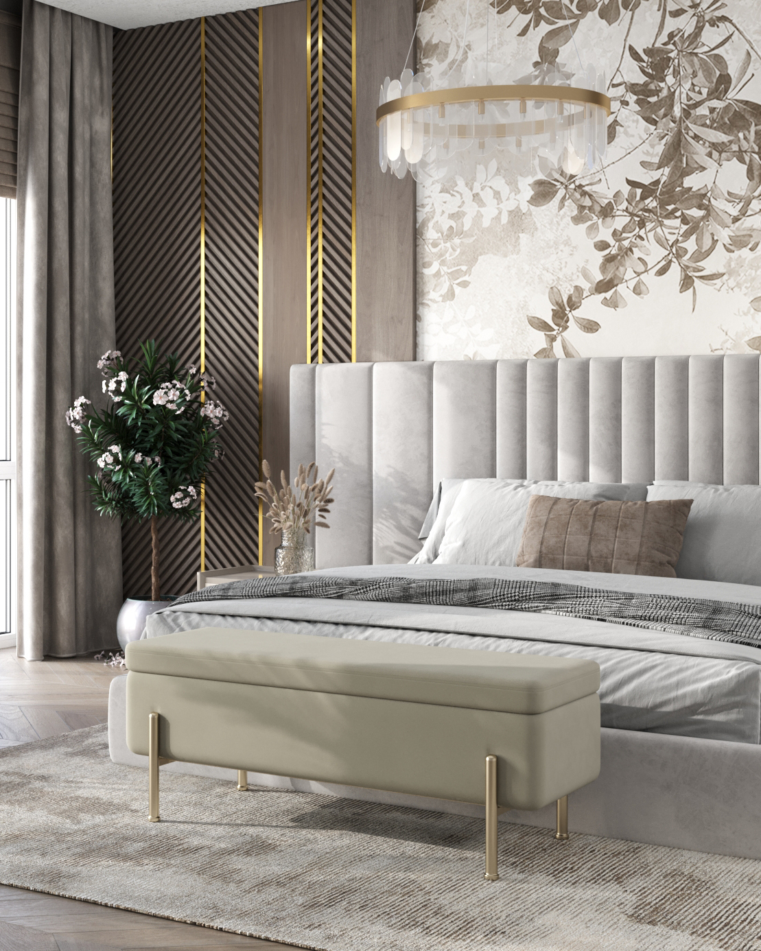 Банкетка Болейн с ящиком велюр бежевый ножки из металла цвет золото