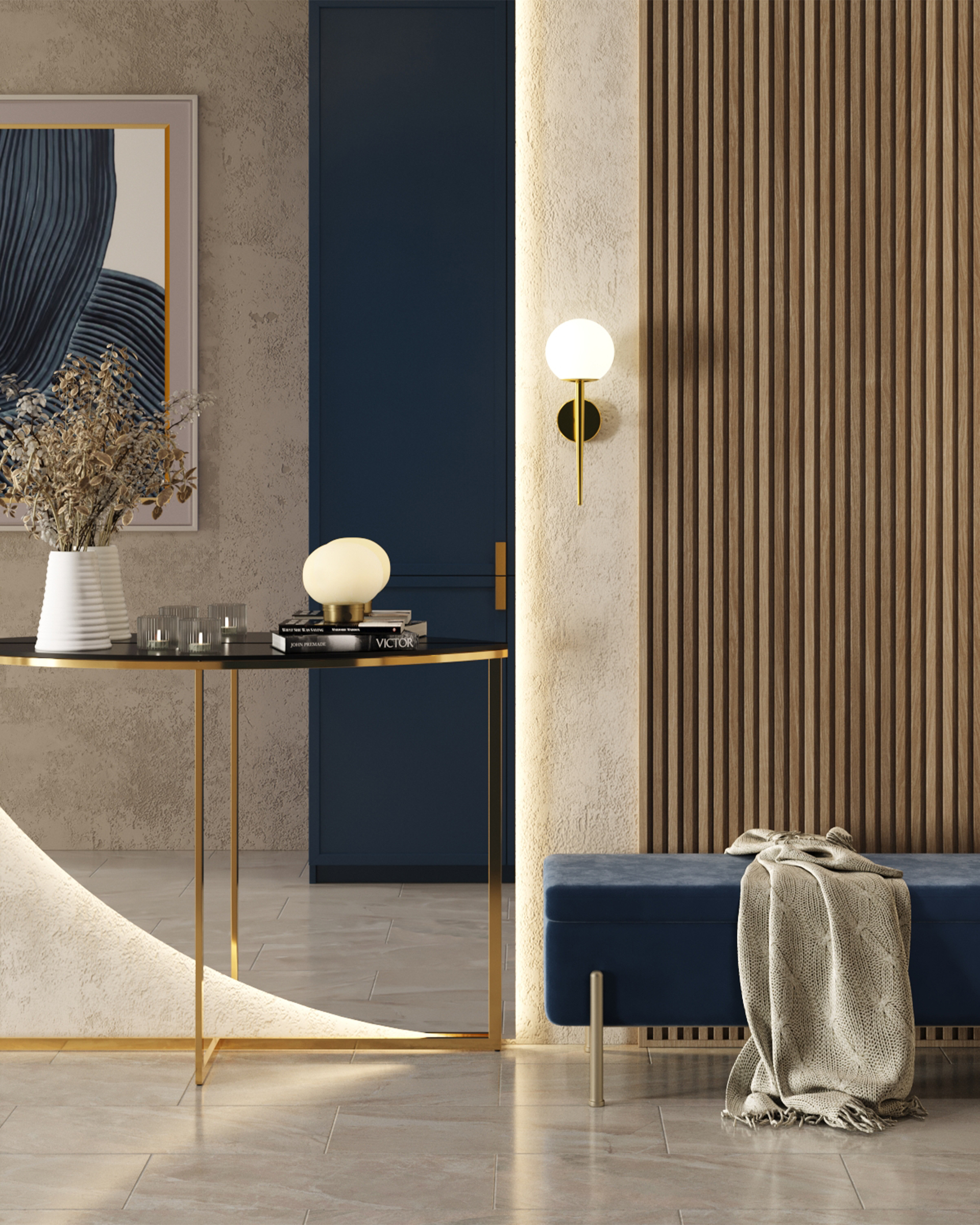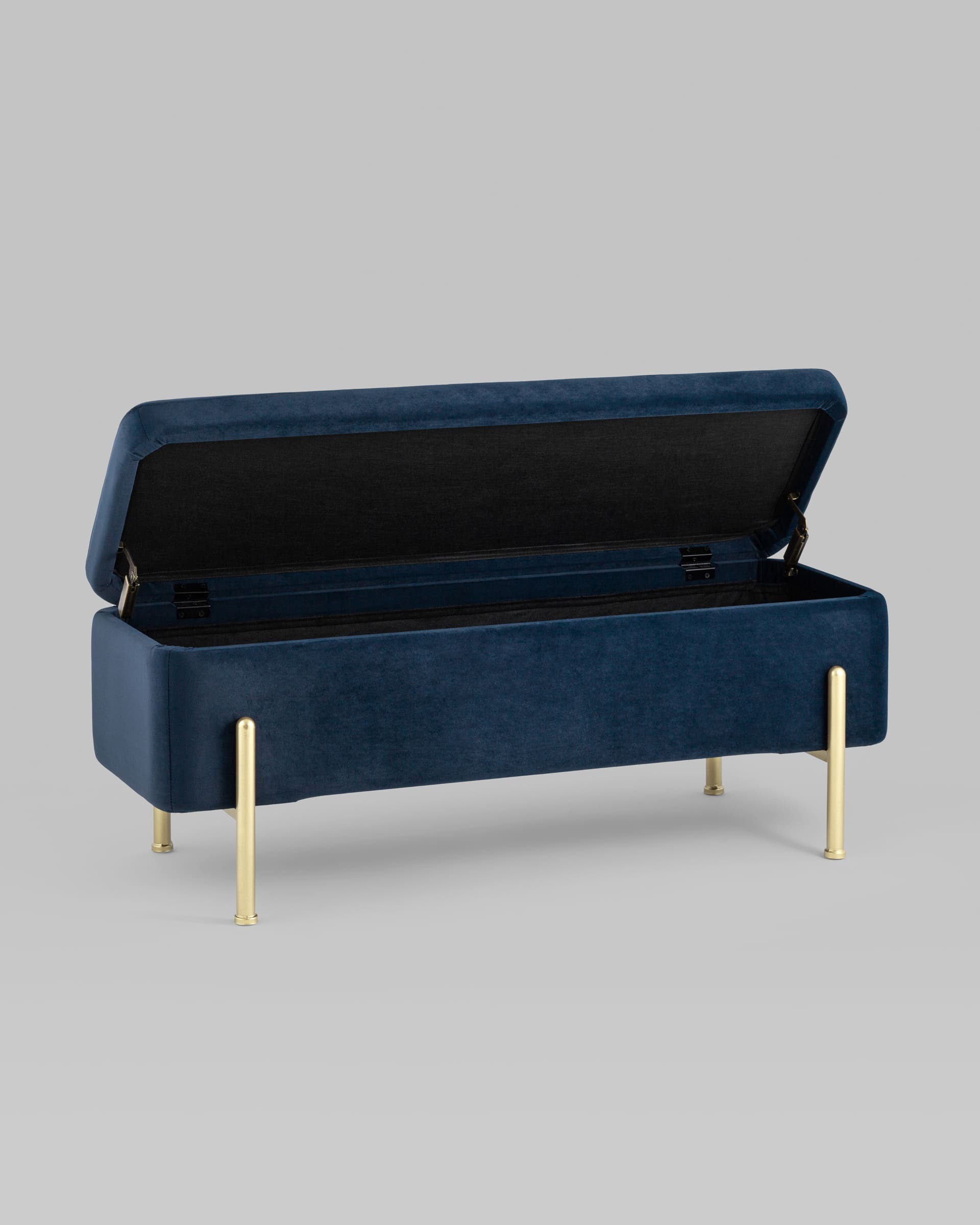 Банкетка Болейн с ящиком велюр синий ножки из металла цвет золото