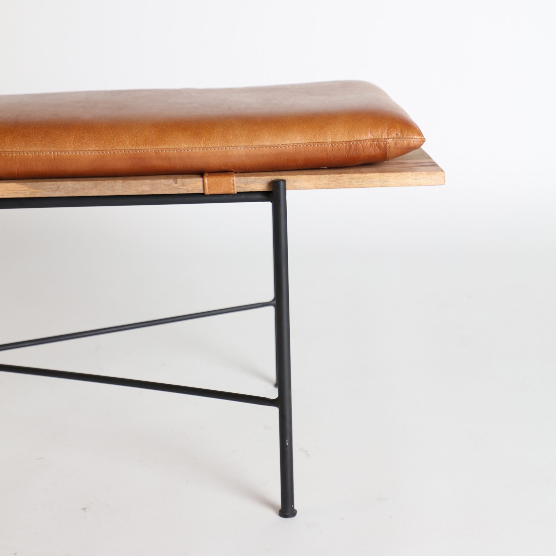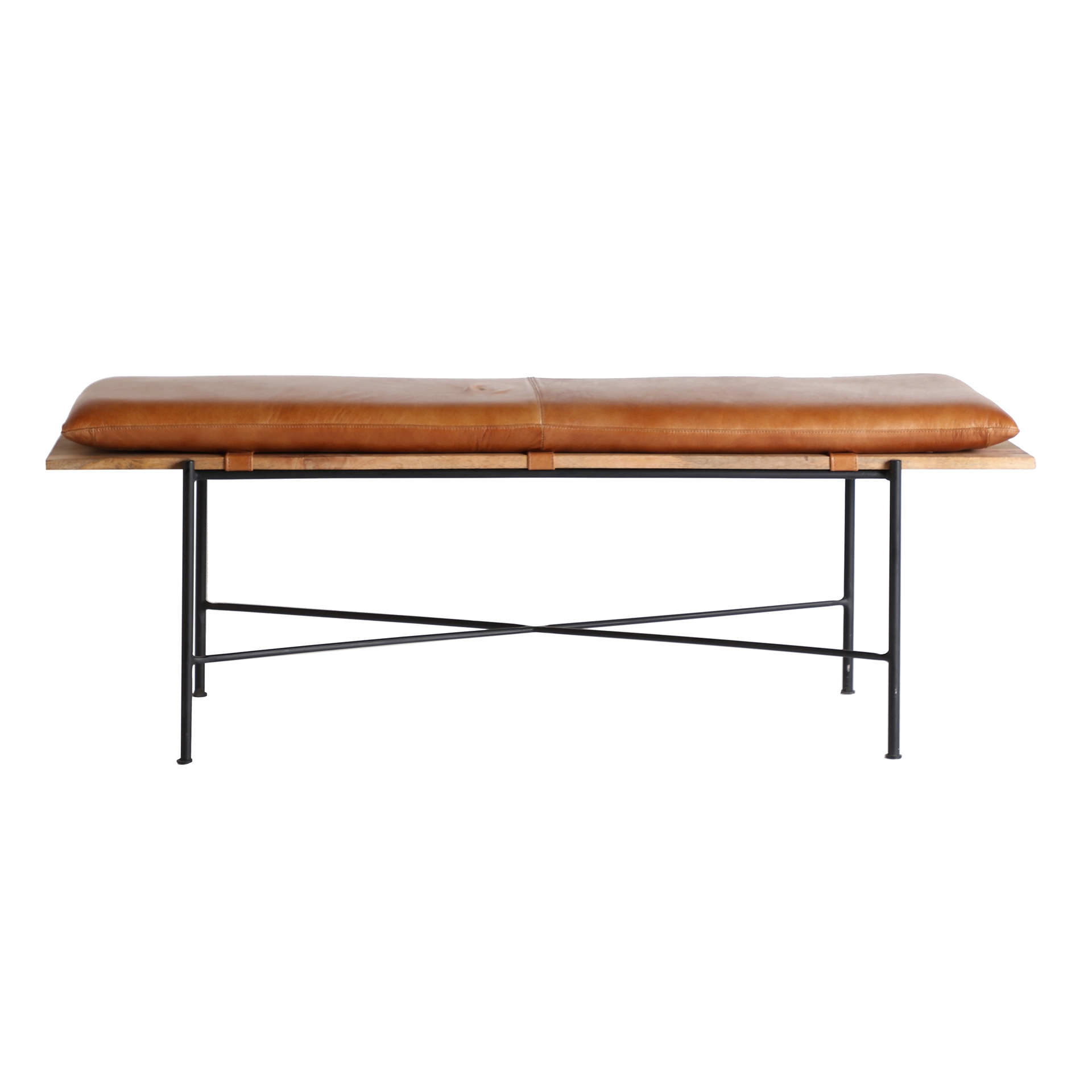 Скамья dexter, коричневый цвет, индустриальный стиль. Изготовлен из железа в сочетании с кожей и деревом манго.