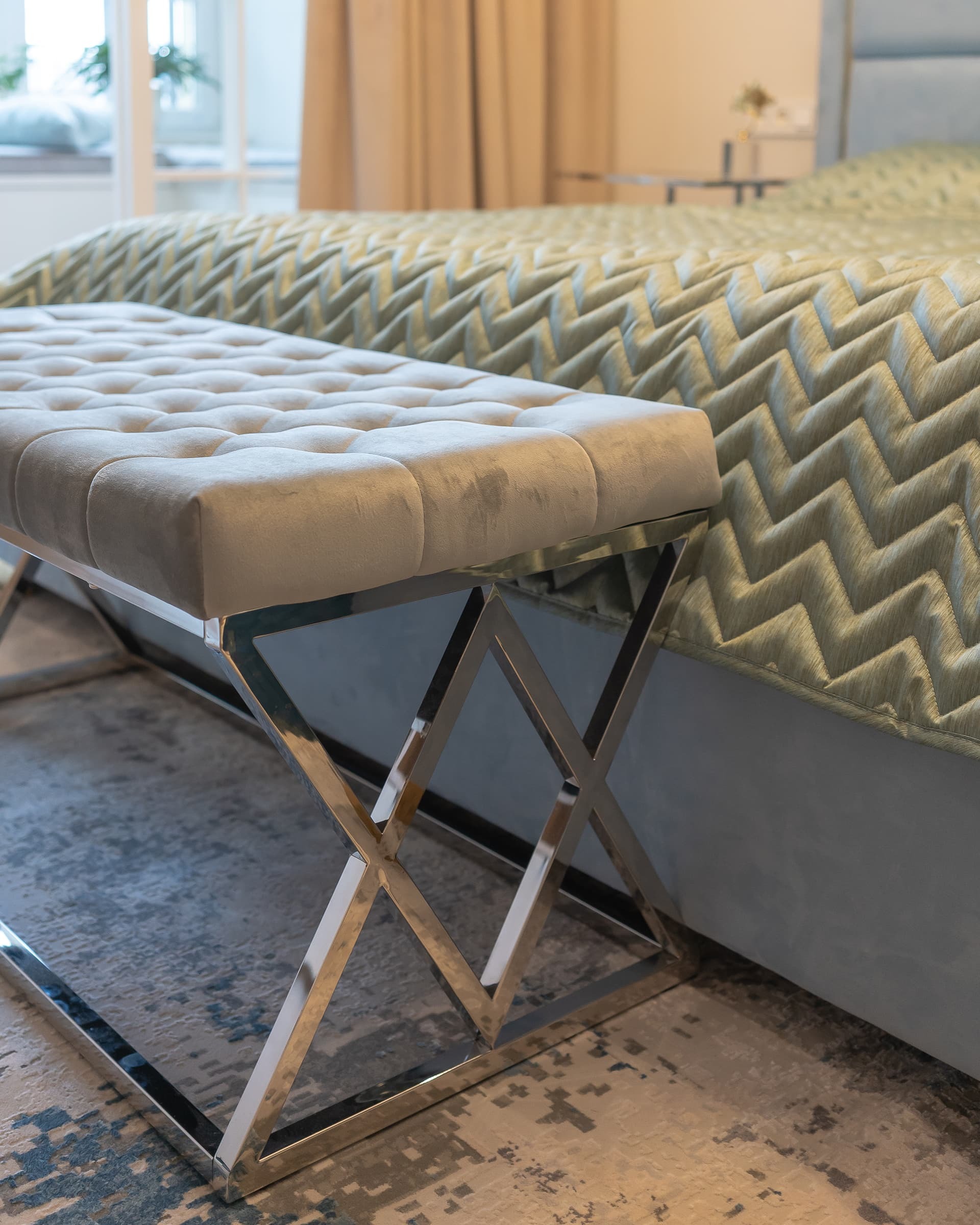 Банкетка Stool Group ИНСИГНИЯ серый велюр нержавеющая сталь серебро