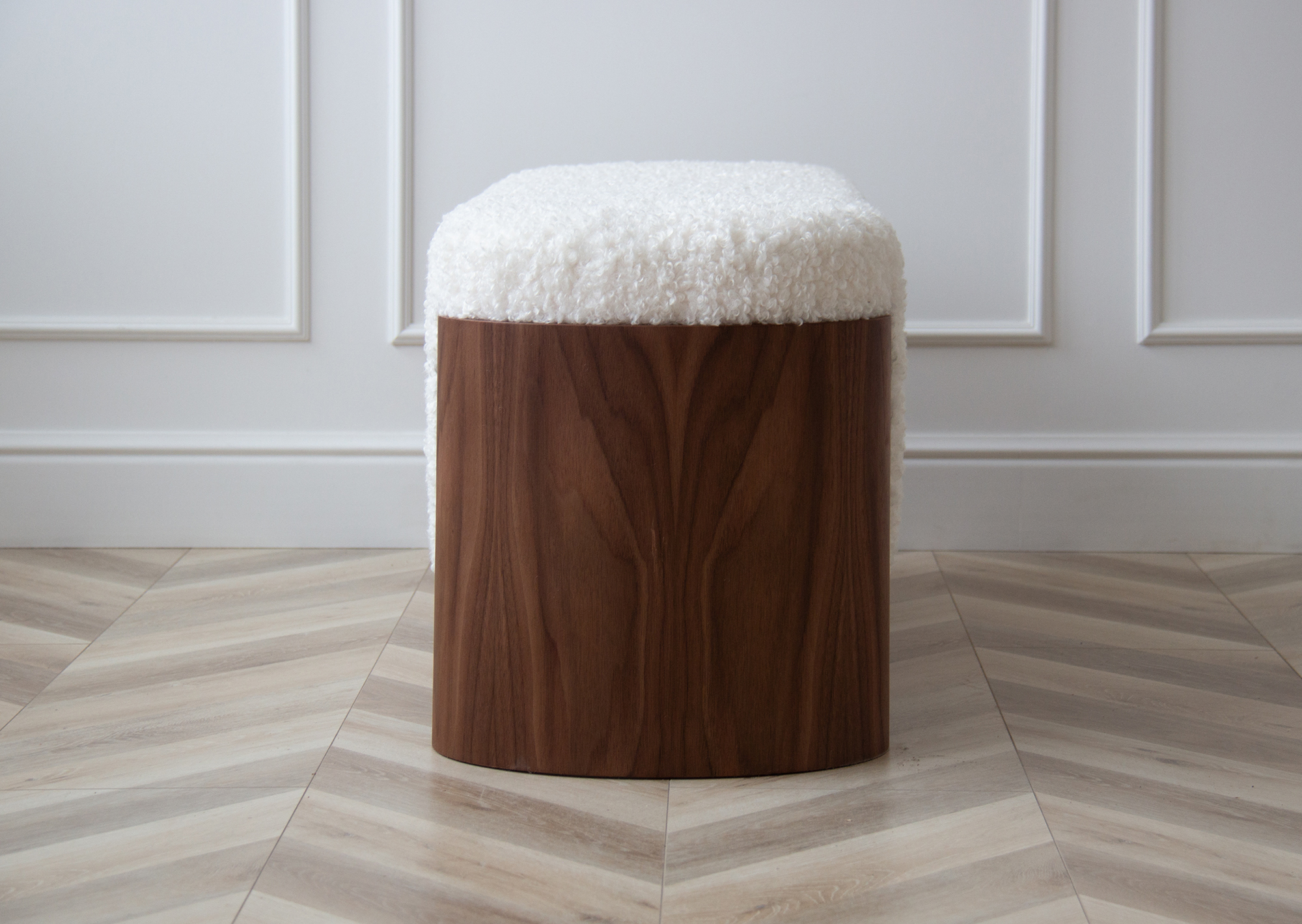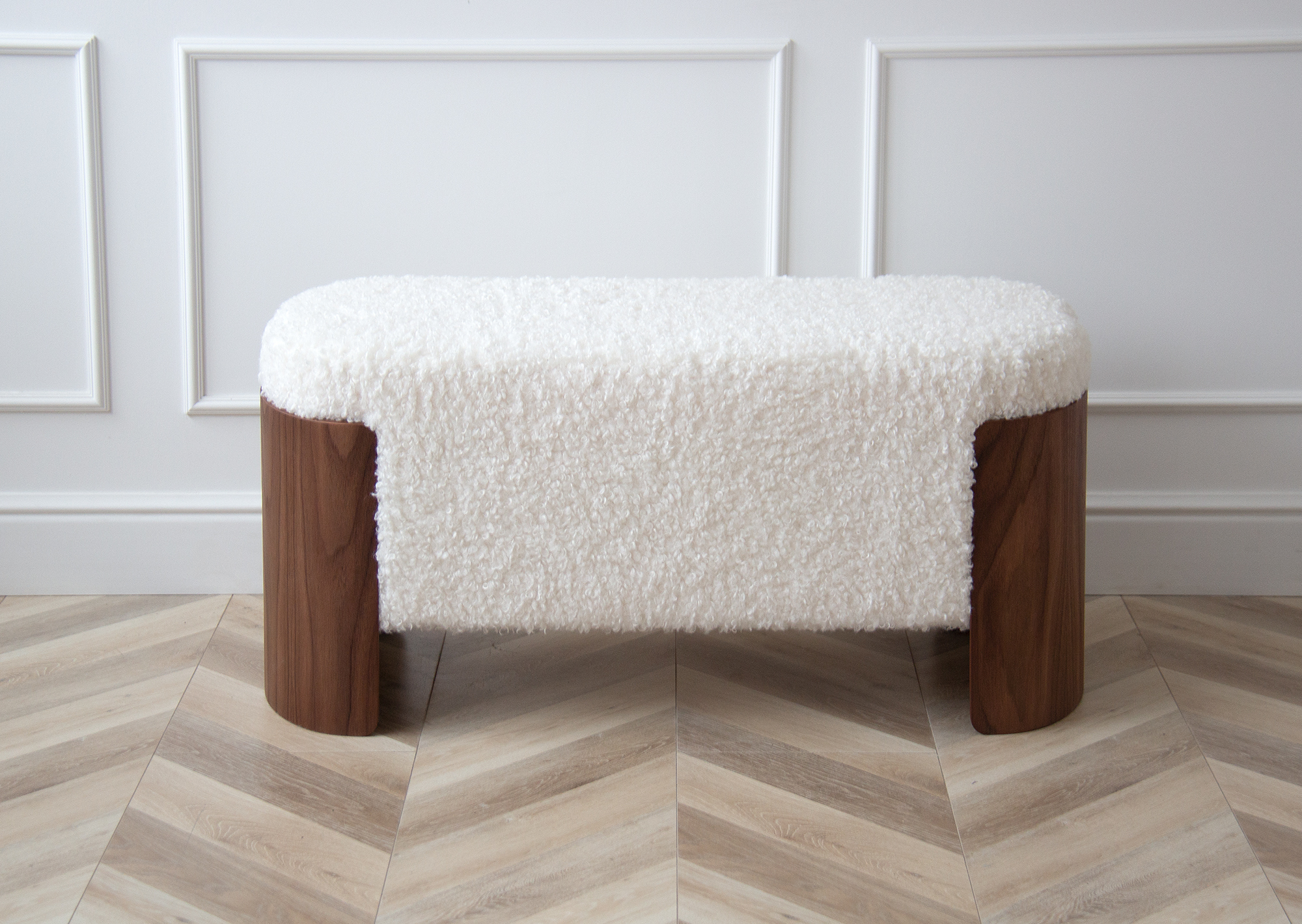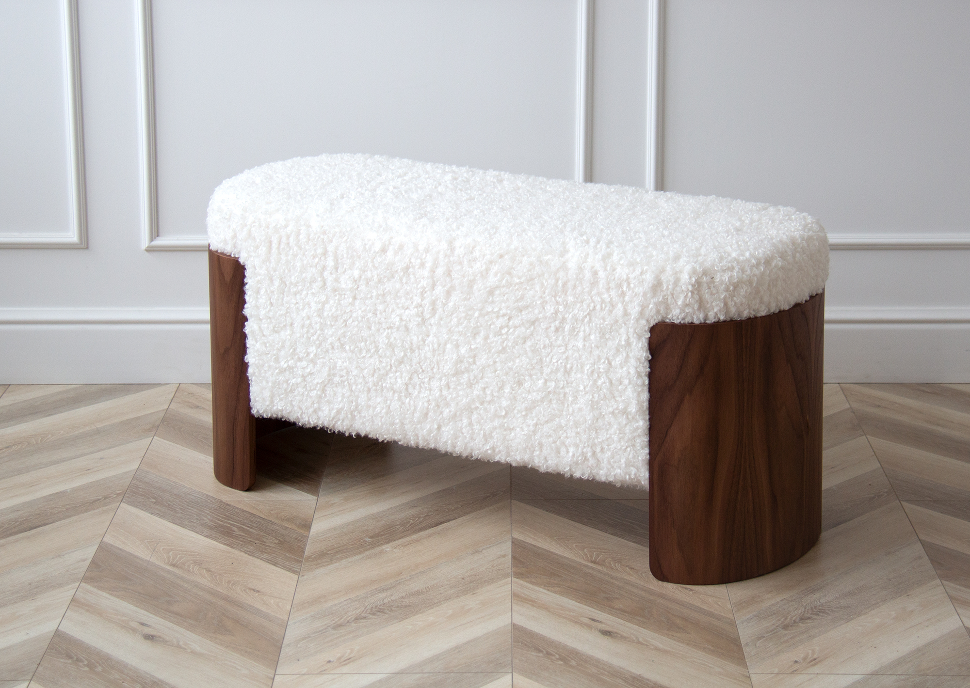 Банкетка Lagom 100 см (белый мех, орех)