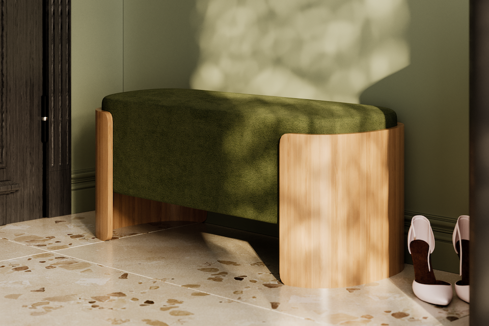 Банкетка Lagom 100 см (зеленый, натуральный дуб)
