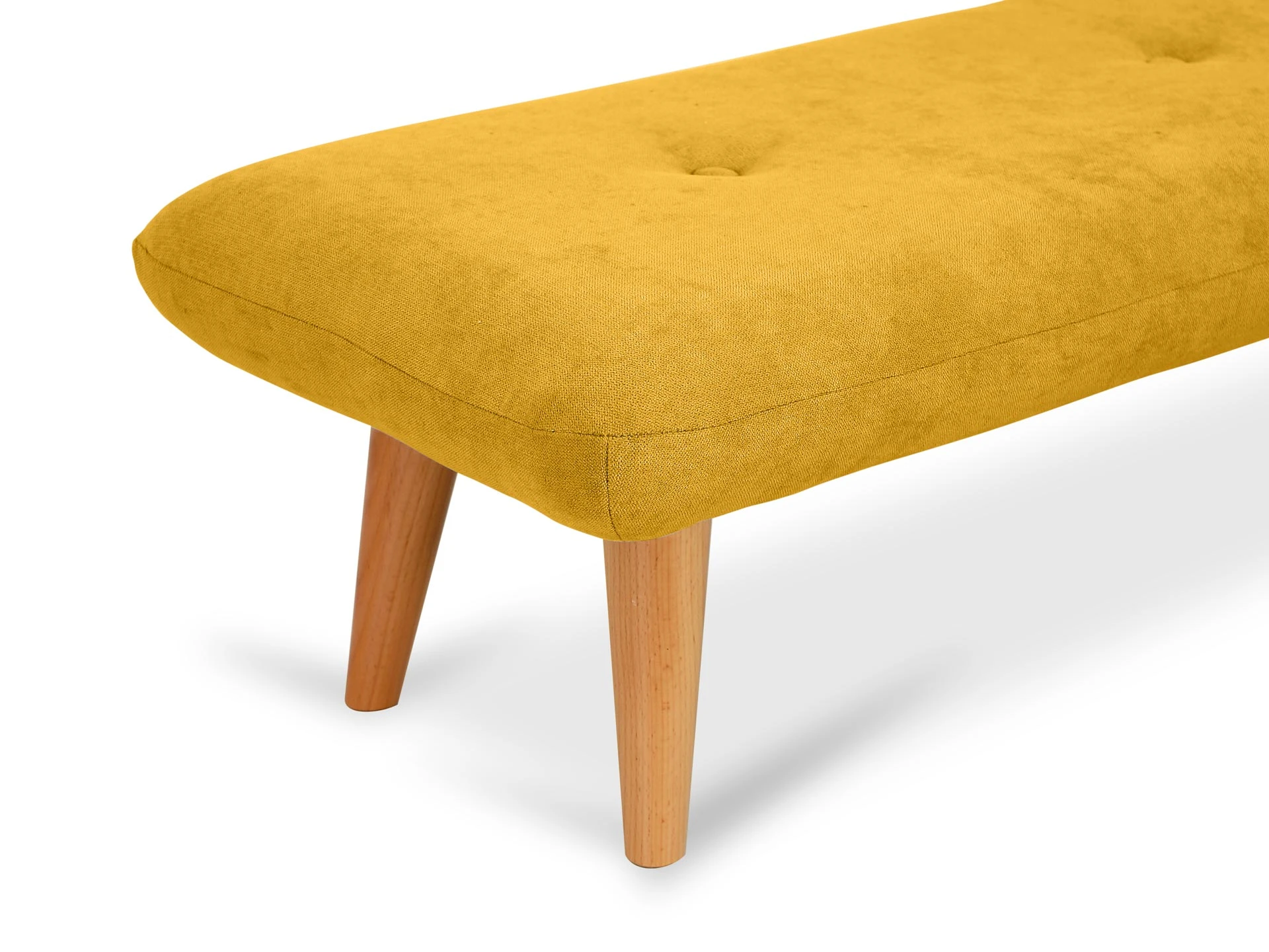 Невысокие (200 мм) ножки изготовлены из массива бука, дополнены фетровыми подпятниками, благодаря которым они не царапают напольное покрытие. Каркас выполнен из брусков дерева хвойных пород. А для максимального комфорта сидящего мы добавили в качестве наполнителя пенополиуретан марки ST (22/36) и синтепон – упругие, удобные, не теряющие формы даже при активном использовании мебели. Чехол из приятной на ощупь фактурной ткани несъёмный, декорирован пуговицами.