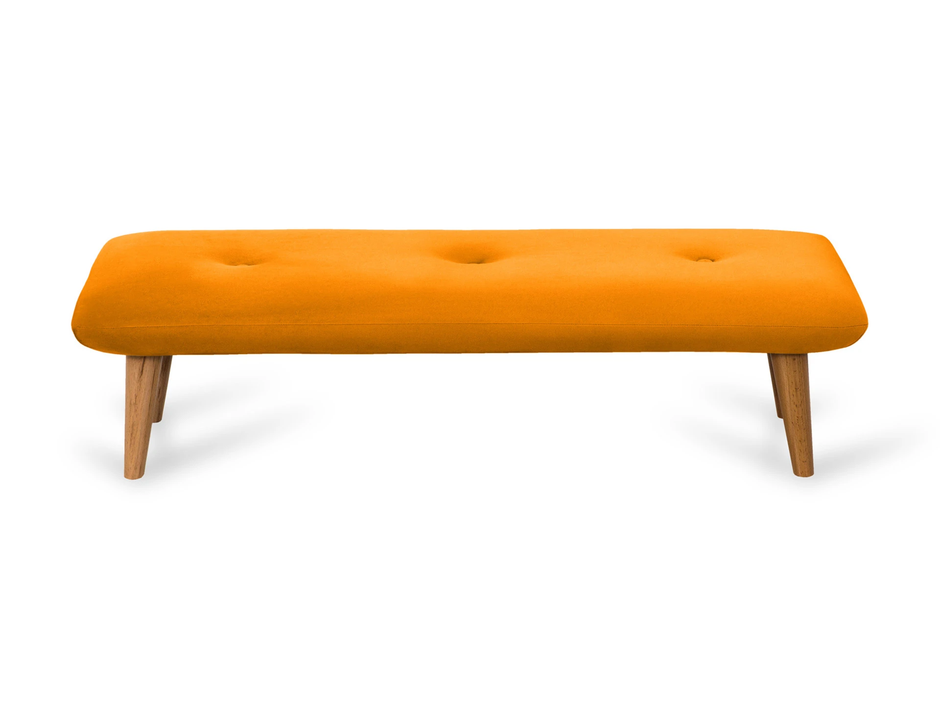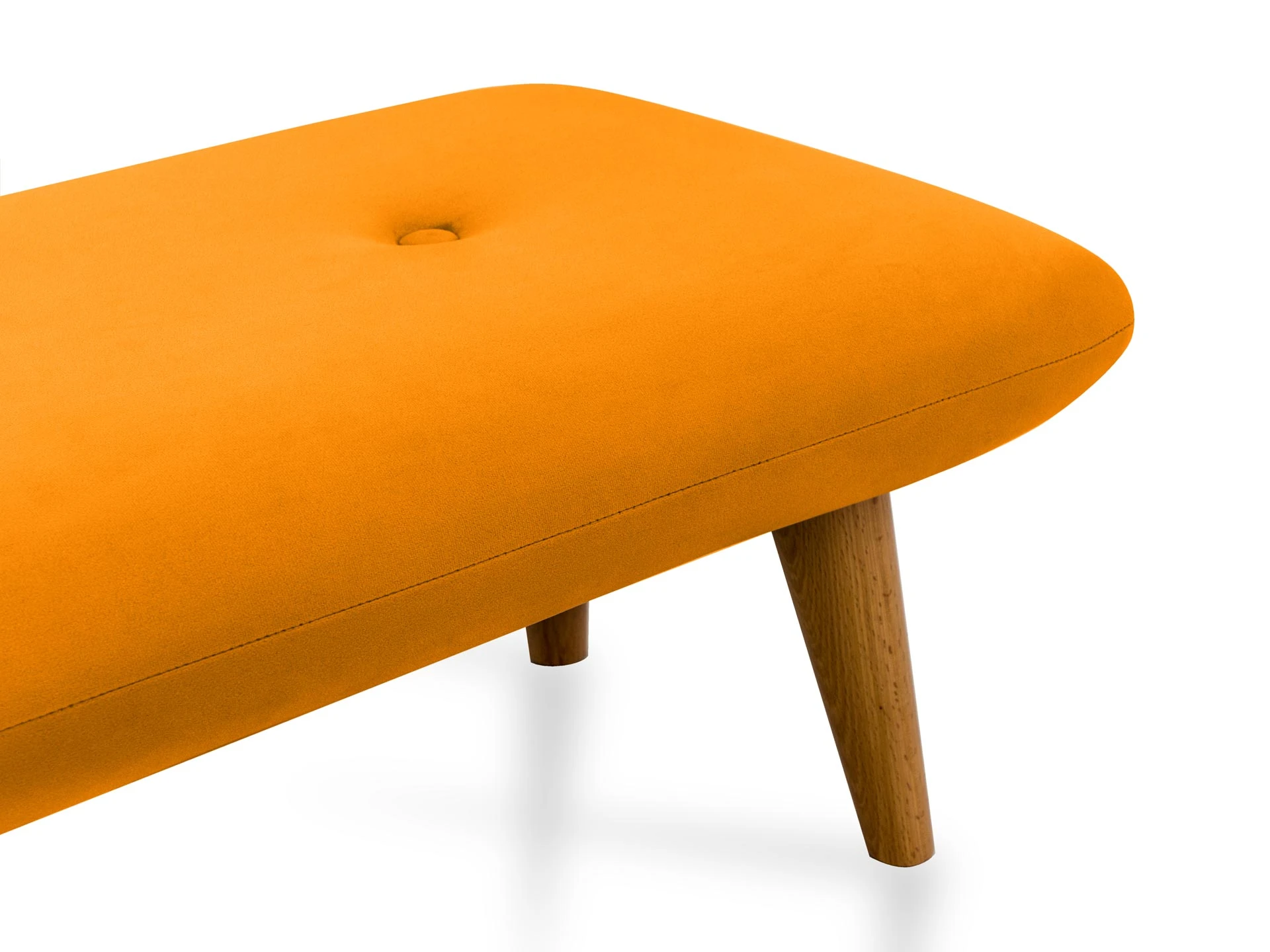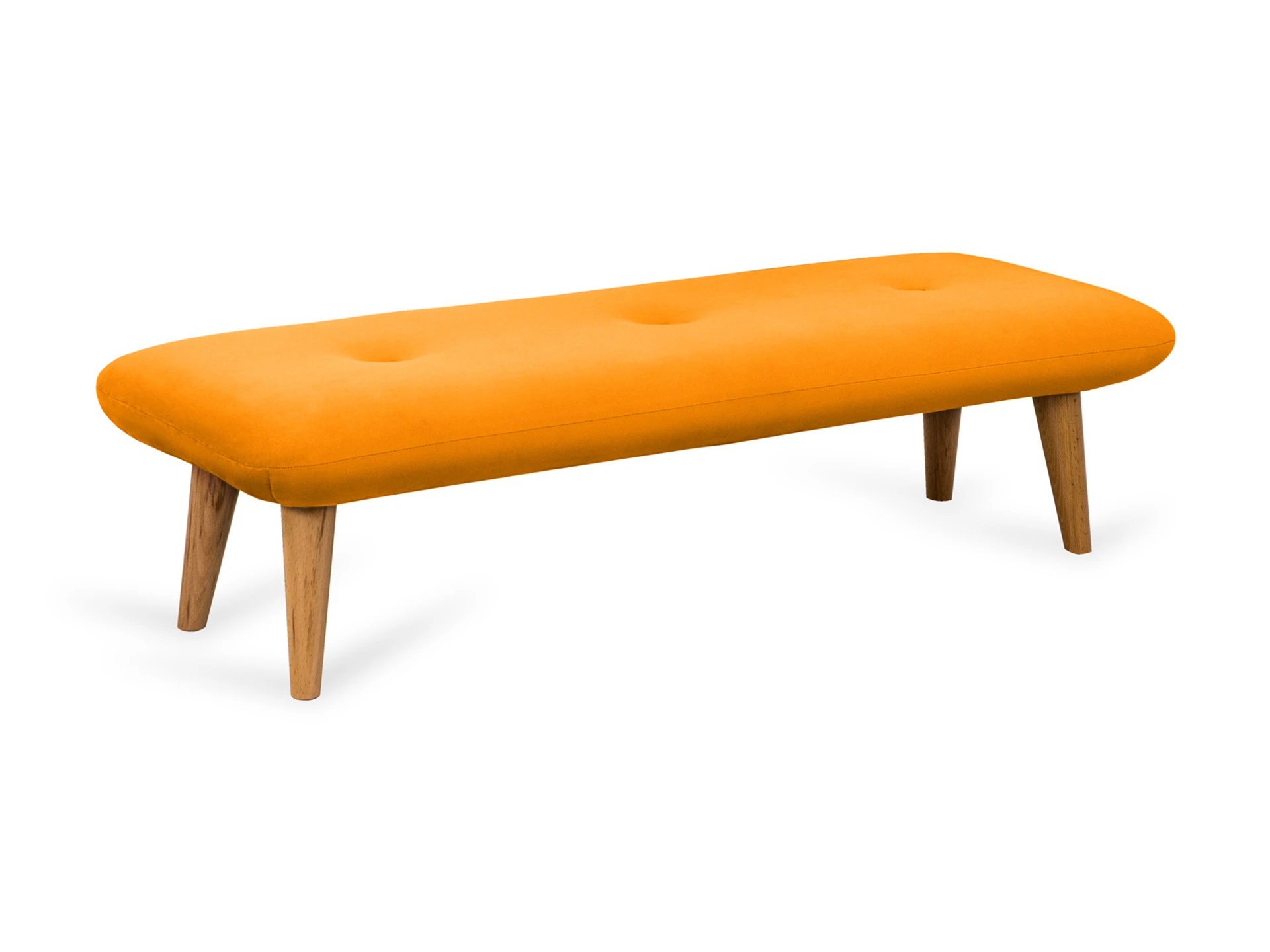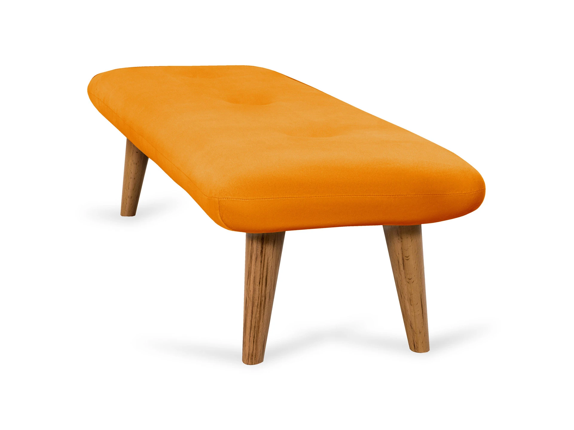 Невысокие (200 мм) ножки изготовлены из массива бука, дополнены фетровыми подпятниками, благодаря которым они не царапают напольное покрытие. Каркас выполнен из брусков дерева хвойных пород. А для максимального комфорта сидящего мы добавили в качестве наполнителя пенополиуретан марки ST (22/36) и синтепон – упругие, удобные, не теряющие формы даже при активном использовании мебели. Чехол из приятной на ощупь фактурной ткани несъёмный, декорирован пуговицами.
