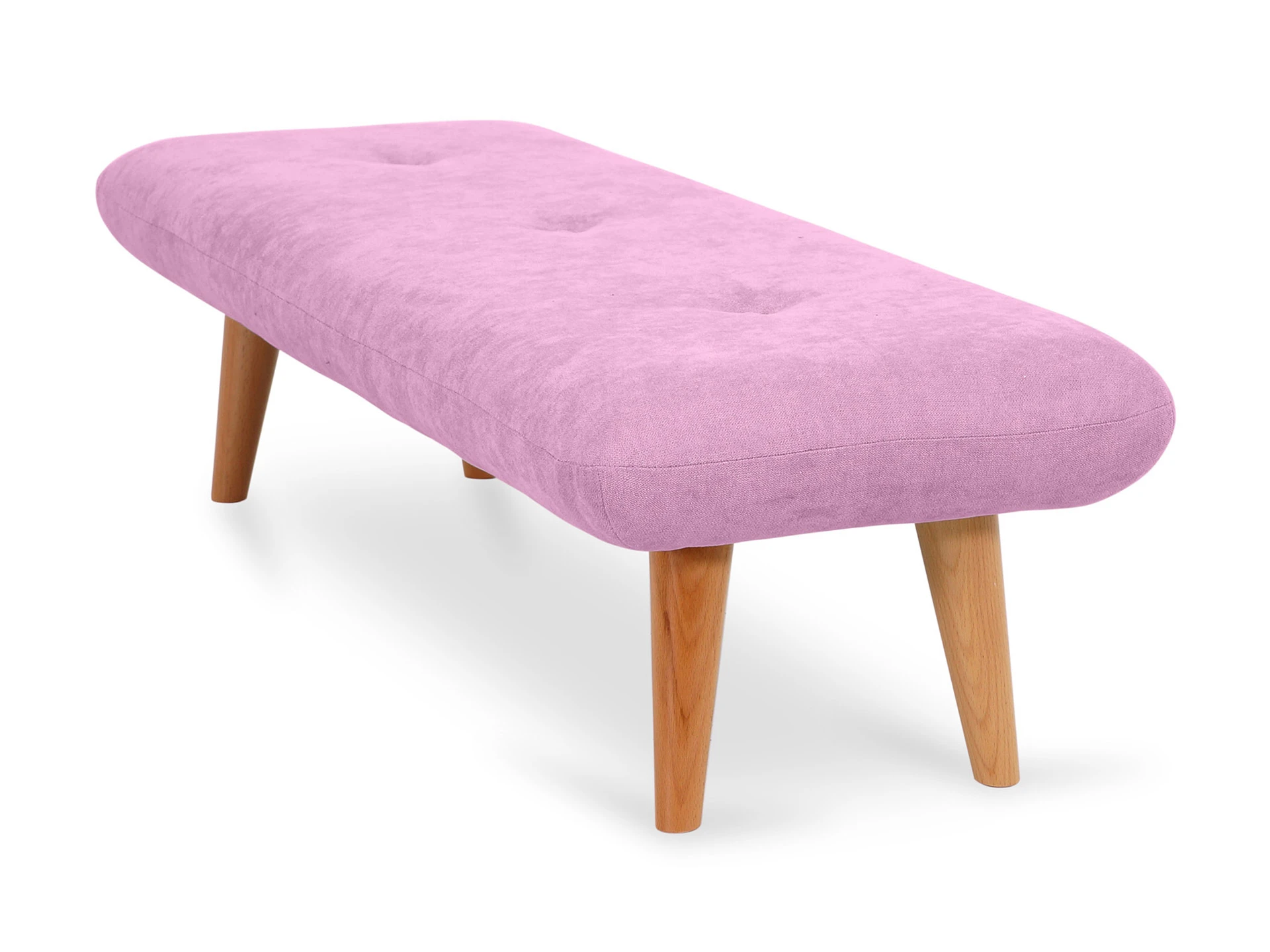 Невысокие (200 мм) ножки изготовлены из массива бука, дополнены фетровыми подпятниками, благодаря которым они не царапают напольное покрытие. Каркас выполнен из брусков дерева хвойных пород. А для максимального комфорта сидящего мы добавили в качестве наполнителя пенополиуретан марки ST (22/36) и синтепон – упругие, удобные, не теряющие формы даже при активном использовании мебели. Чехол из приятной на ощупь фактурной ткани несъёмный, декорирован пуговицами.