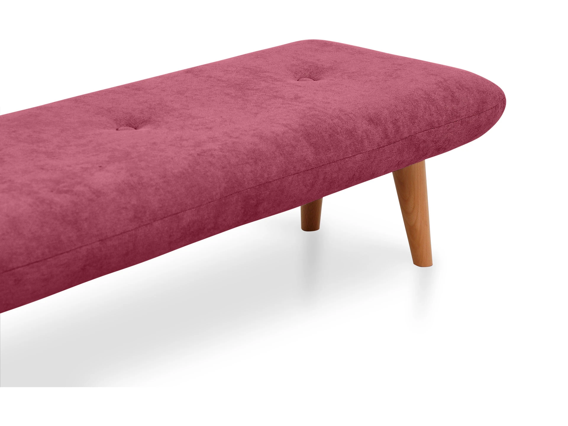 Невысокие (200 мм) ножки изготовлены из массива бука, дополнены фетровыми подпятниками, благодаря которым они не царапают напольное покрытие. Каркас выполнен из брусков дерева хвойных пород. А для максимального комфорта сидящего мы добавили в качестве наполнителя пенополиуретан марки ST (22/36) и синтепон – упругие, удобные, не теряющие формы даже при активном использовании мебели. Чехол из приятной на ощупь фактурной ткани несъёмный, декорирован пуговицами.
