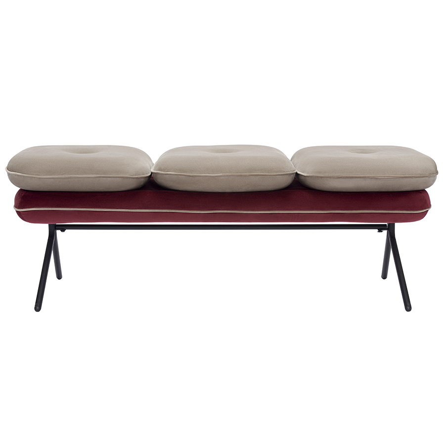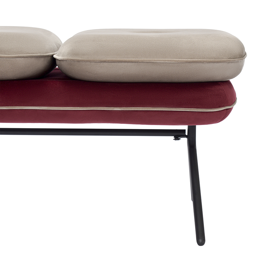 Материалы: 100% полиэстер, пенополиуретан, фанера, железо. Размеры: 123,9х43,1х42,9 см. Цвет: бежевый/бордовый. Максимальная нагрузка – 150 кг.
