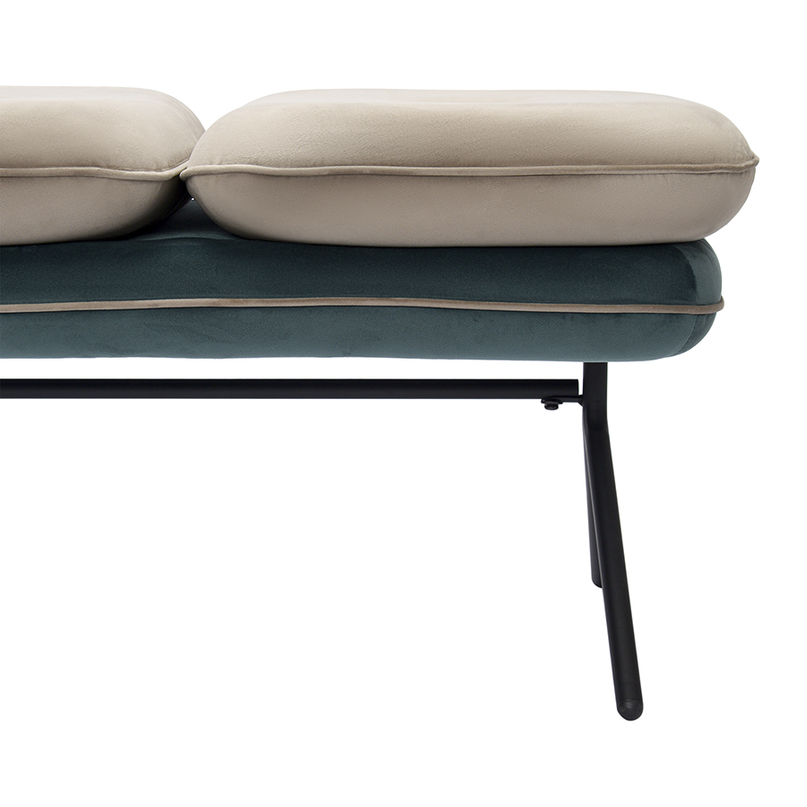 Материалы: 100% полиэстер, пенополиуретан, фанера, железо. Размеры: 123,9х43,1х42,9 см. Цвет: бежевый/сине-зеленый. Максимальная нагрузка – 150 кг.