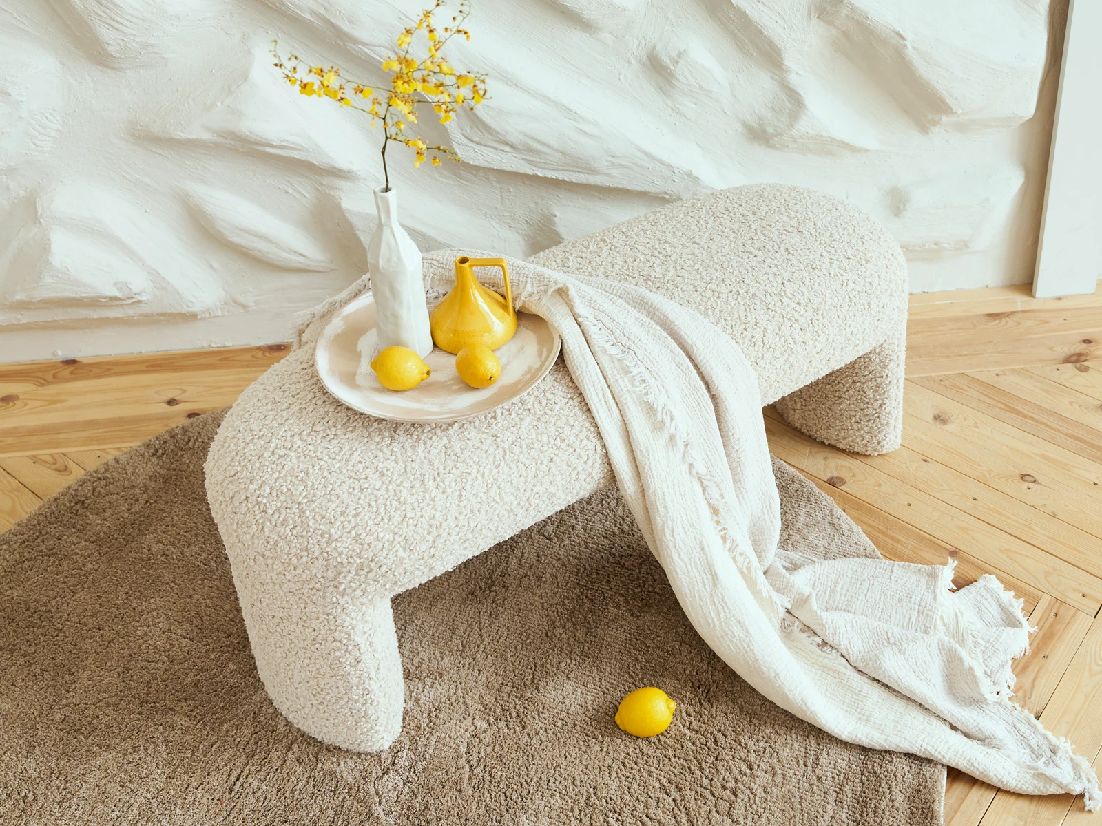 Банкетка Shaggy — манифест нежности с сильным характером. Прочный каркас из массива дерева имеет плавные очертания. Лаконичная архитектура рисует стройный силуэт, который подружится с пространством любой эстетики. Обивка из мягкого ворса напоминает мех. Поддерживает теплые и уютные тактильные ощущения.