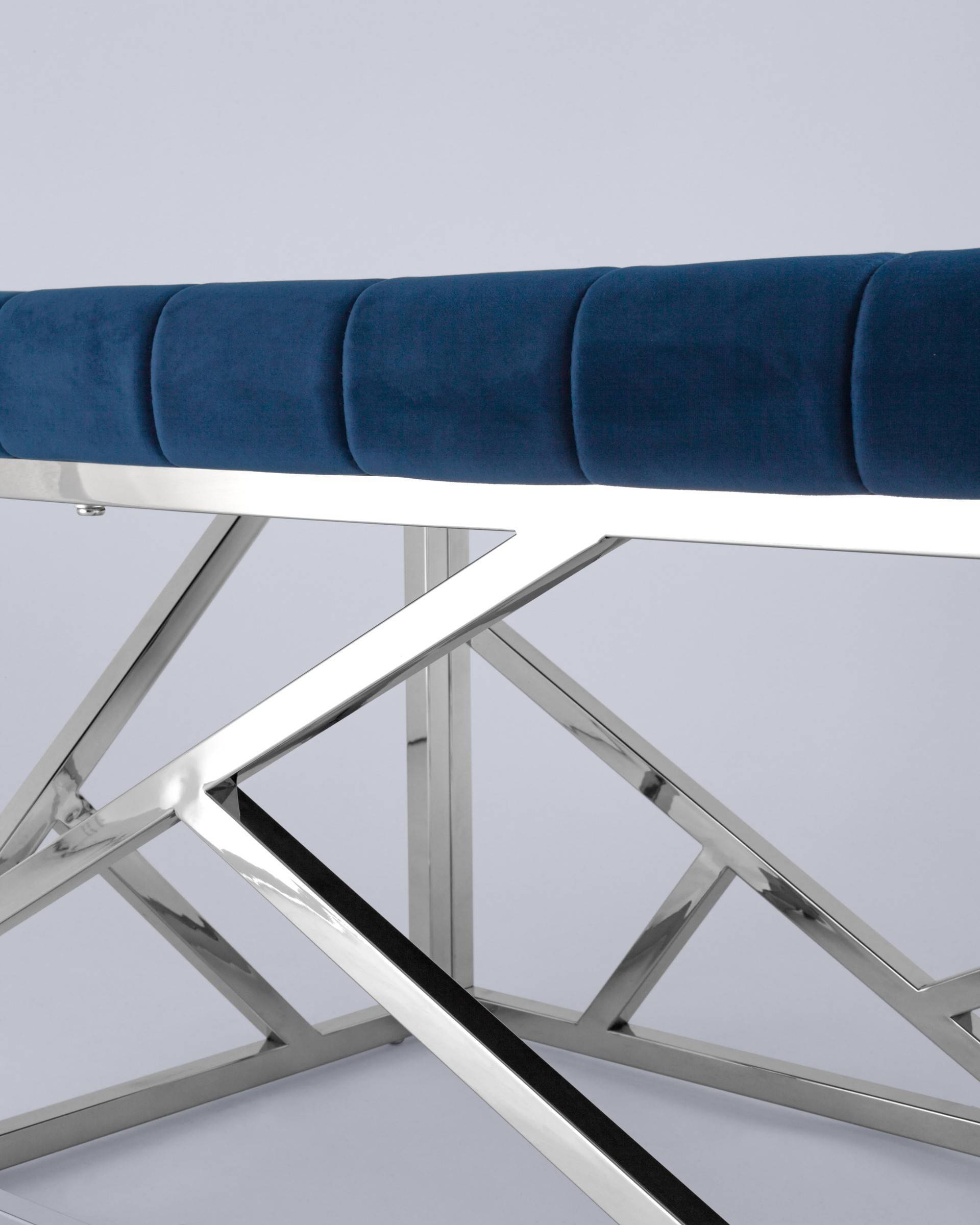 Банкетка-скамейка АРТ ДЕКО сталь серебро, нержавеющая сталь, обивка сиденья синий велюр