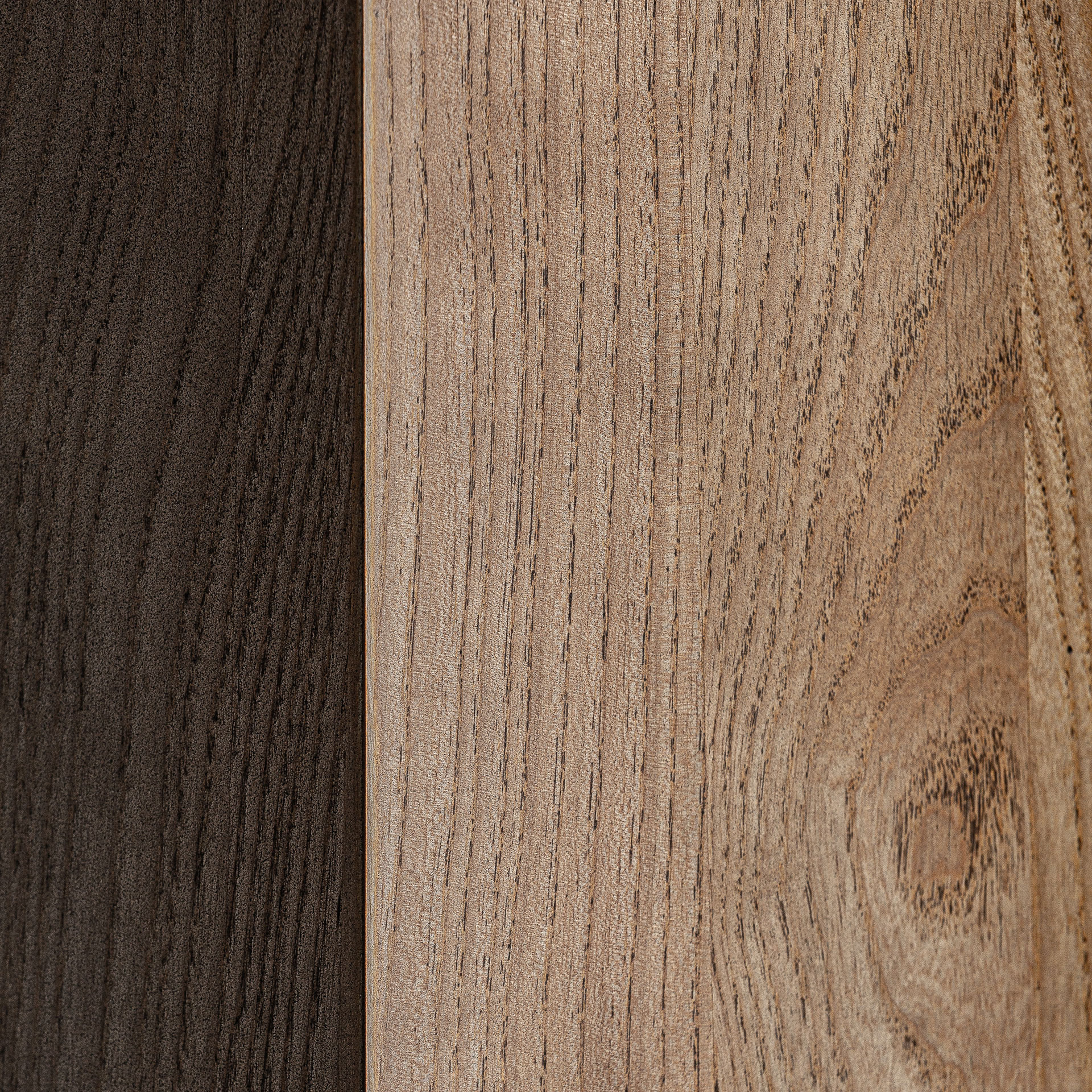 Барный стол Karpacz в современном стиле, изготовлен из коричневого дуба в сочетании с бежевым травертином.