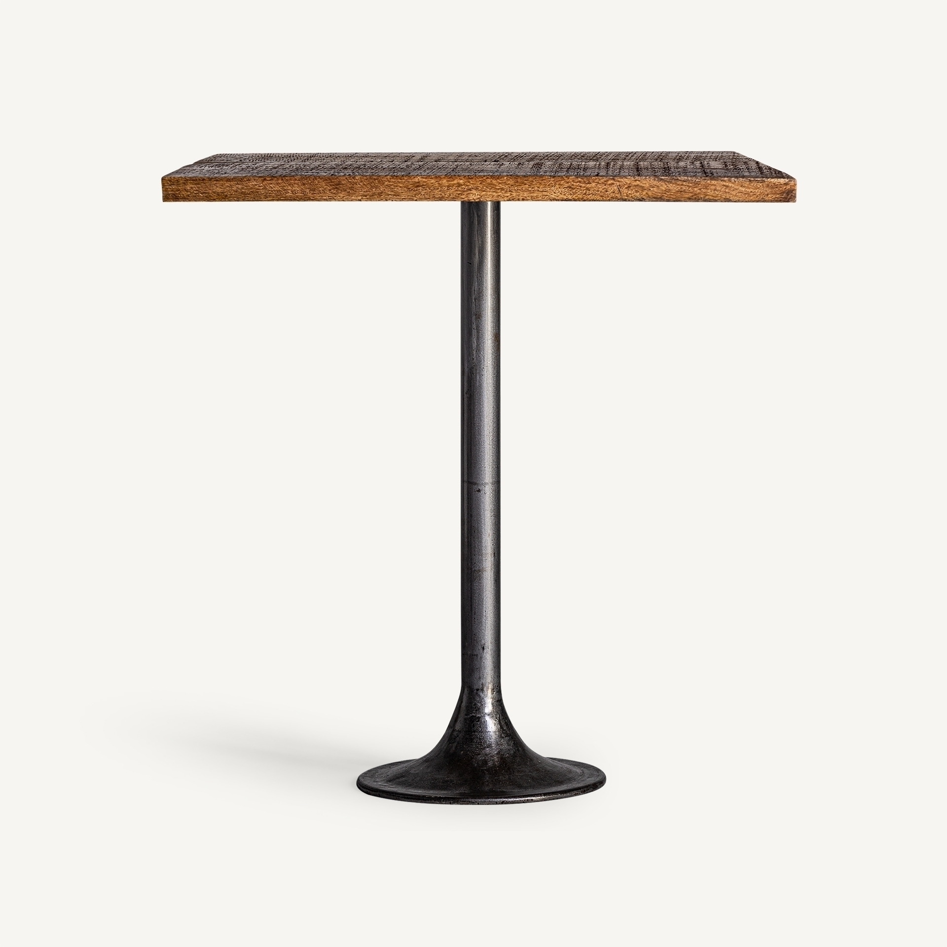 Барный столик в коричнево-черных тонах, вдохновленный винтажным стилем. Железные ножки столика сочетают в себе эксклюзивность и теплоту древесины манго. Благодаря используемым материалам, этот предмет мебели выдерживает испытание временем, сохраняя свой внешний вид и прочность.