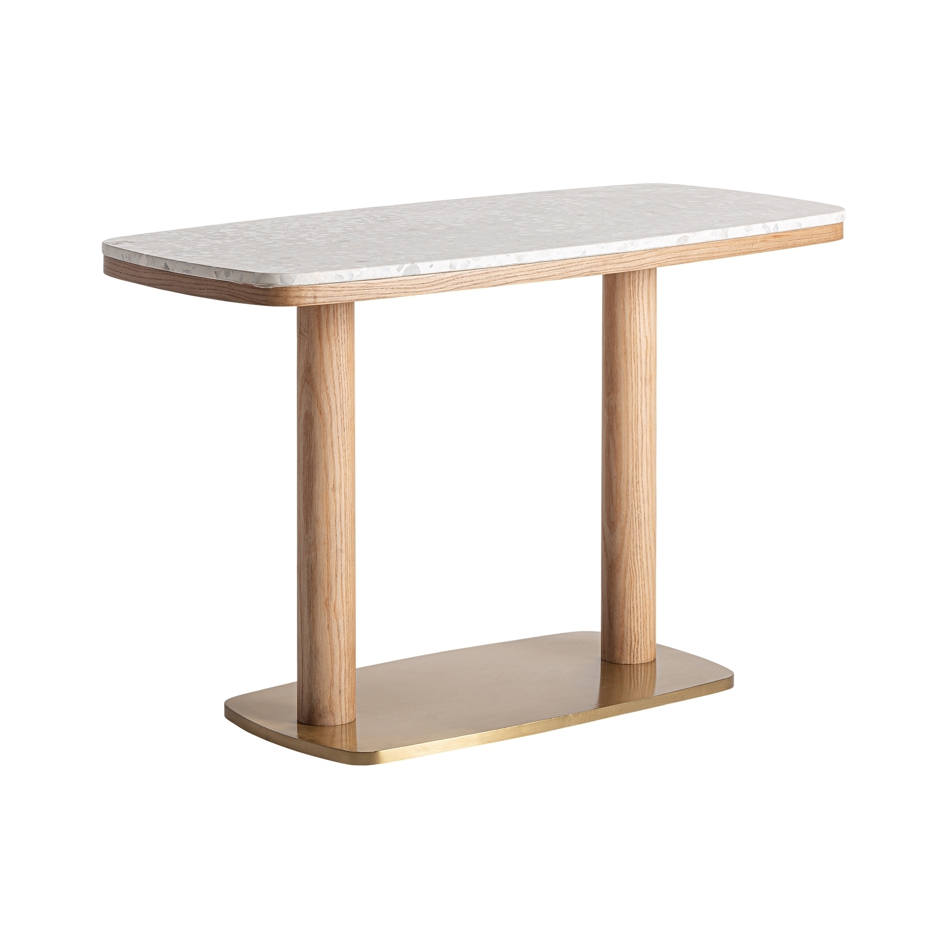 Барный столик Birieux, бело-золотой, стиль арт-деко. Изготовлен из терраццо в сочетании с нержавеющей сталью и дубом.