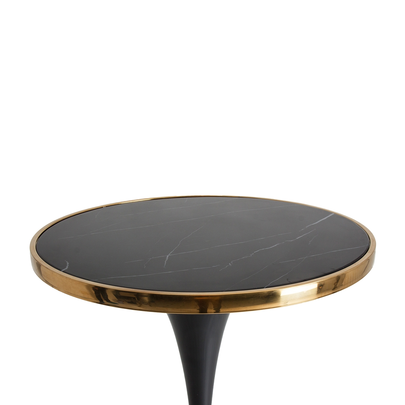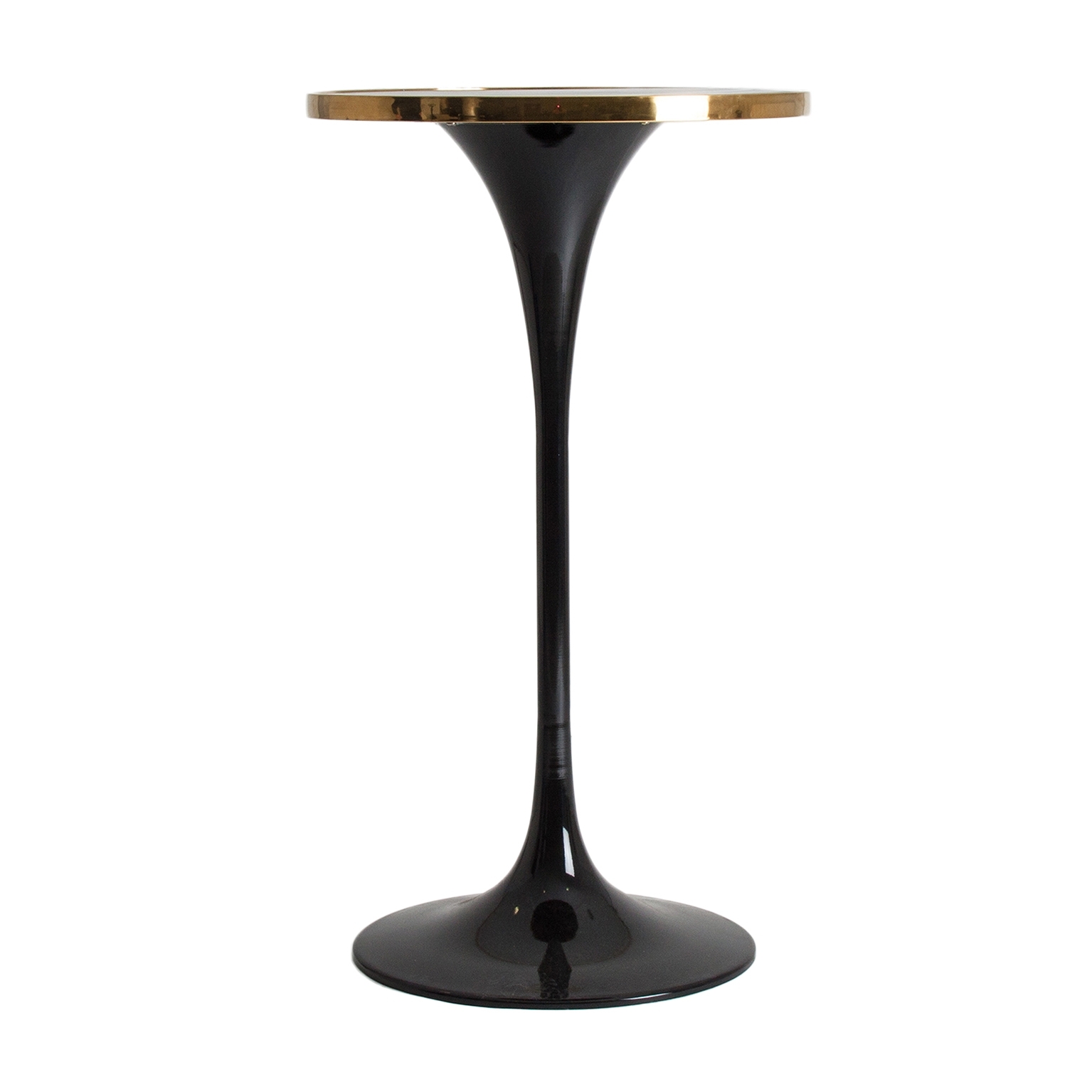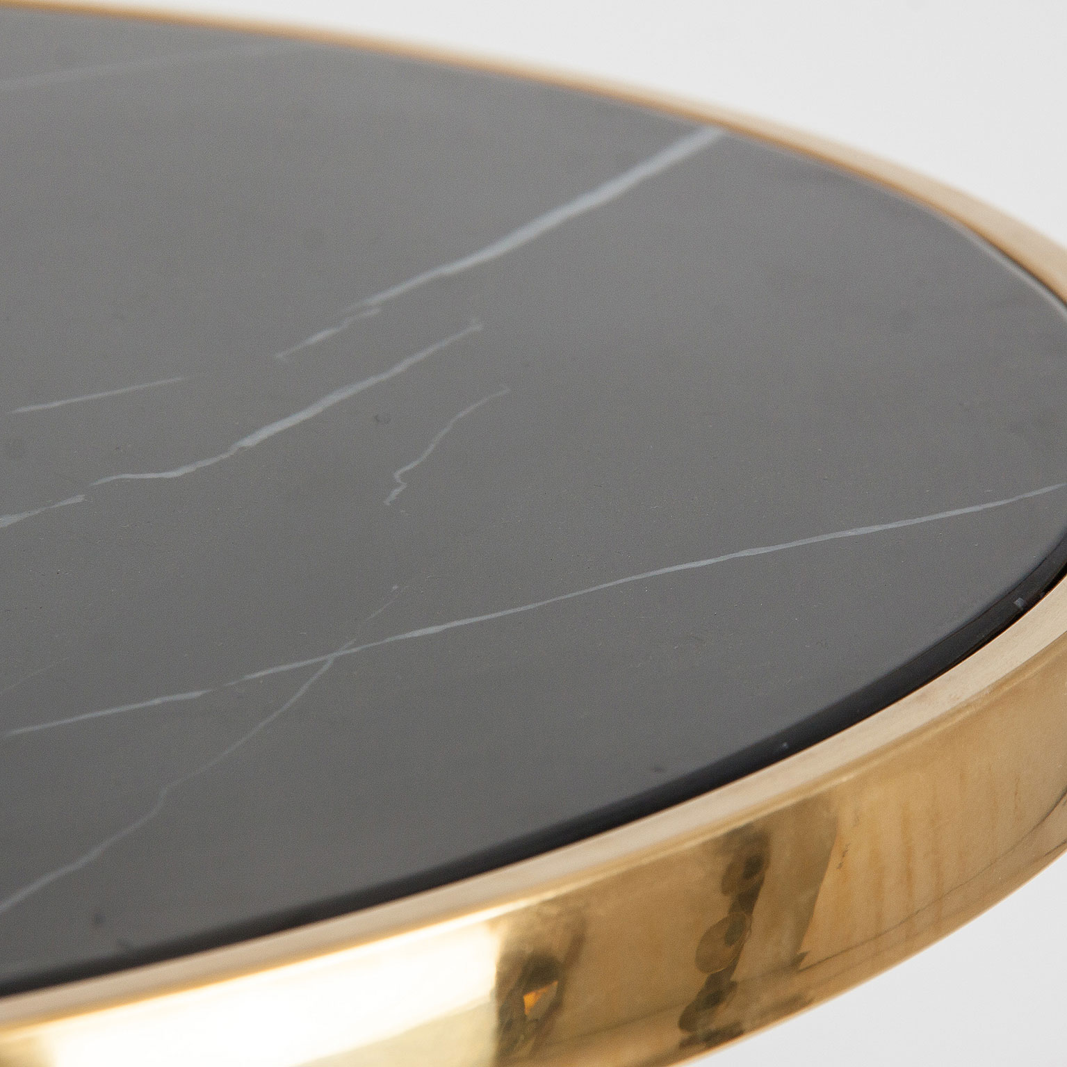 Барная стойка, а не стол, цвета черного/глянцевого золота, стиль ар-деко. Изготовлен из железа в сочетании с синтетическим мрамором и сталью. Съемное изделие.