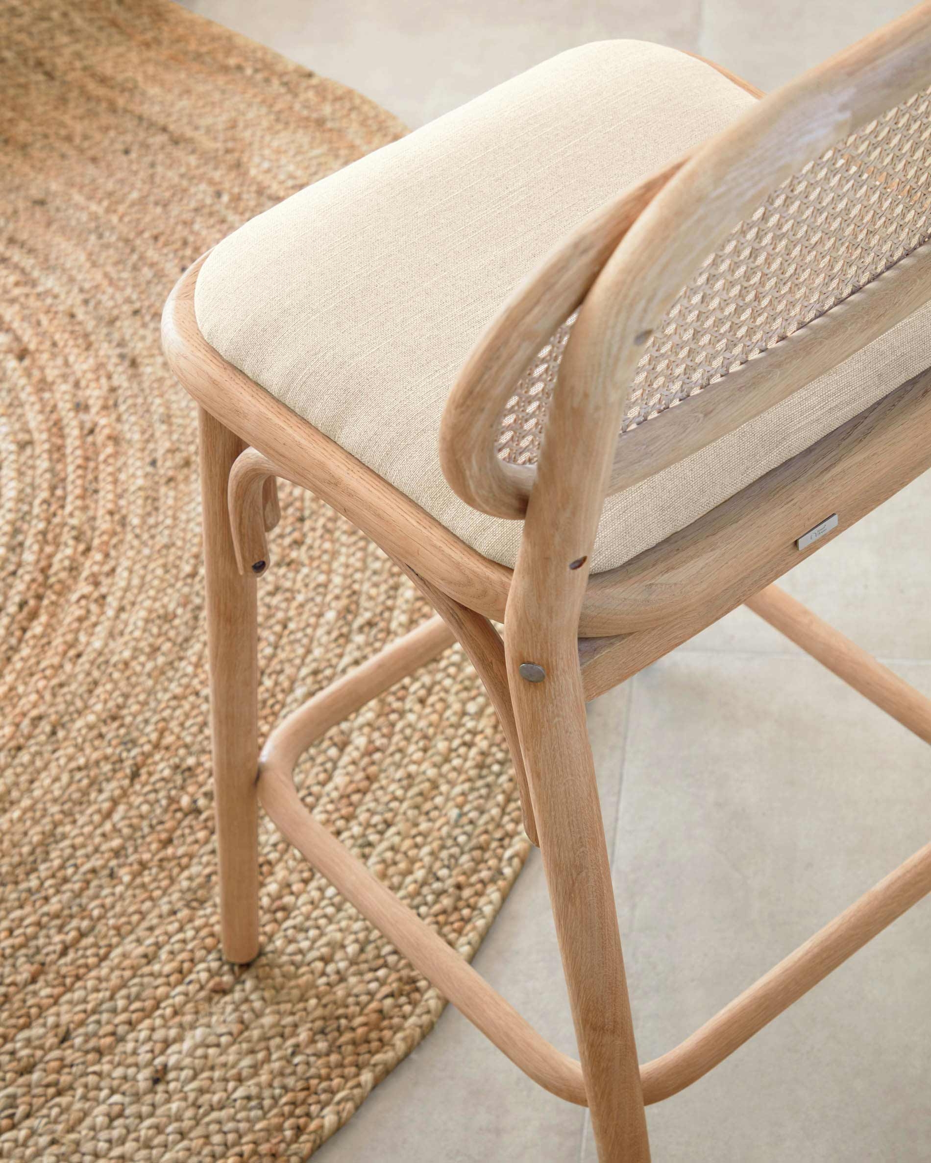 Doriane - это стул ручной работы из массива дуба, сотканного вручную ротанга и сиденья с водоотталкивающей обивкой с эффектом льна. Поместите его рядом с кухонным островом или барной стойкой, чтобы создать модный и естественный вид благодаря этой обновленной классике дизайна.