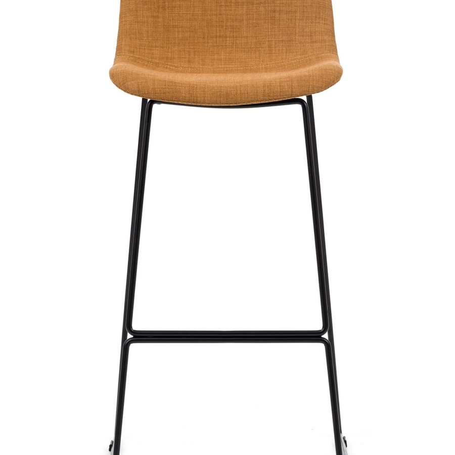 Дизайнерский высокий барный стул Neo (Нео) с мягкой обивкой на стальных ножках от Cosmo (Космо). Модель барного стула Neo с мягкой обивкой, основанная на оригинальных разработках шведского дизайнера Фредрика Маттсона, очаровывает с первого взгляда. Строение модели строго минималистичное. И в то же время универсальные цвета и геометрические формы со сглаженными углами замечательно впишутся в интерьерные композиции деревенского или конструктивного стиля, а также в некоторые интерпретации современной классики. Замечательной находкой этот предмет станет для любителей натуральных материалов в оформлении жилья. Высокая конструкция подставки стула окрашена в строгий черный цвет. Сиденье выгнутой формы, плавно перетекающее в низкую спинку, обтянуто плотной тканью насыщенных цветов. Текстура обивки, удивительно похожая на грубое льняное полотно, делает оригинальный барный стул Neo с мягкой обивкой прекрасным и модным дополнением любого бара или клуба. А возможно, вам захочется создать такое же теплое настроение и у себя на кухне. Гарантия: 1 год. Цвет: чёрный,оранжевый, Глубина (см): 49,5, Высота (см): 100,5