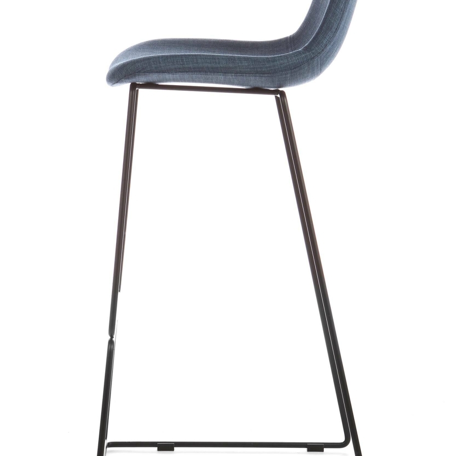 Дизайнерский высокий барный стул Neo (Нео) с мягкой обивкой на стальных ножках от Cosmo (Космо). Модель барного стула Neo с мягкой обивкой, основанная на оригинальных разработках шведского дизайнера Фредрика Маттсона, очаровывает с первого взгляда. Строение модели строго минималистичное. И в то же время универсальные цвета и геометрические формы со сглаженными углами замечательно впишутся в интерьерные композиции деревенского или конструктивного стиля, а также в некоторые интерпретации современной классики. Замечательной находкой этот предмет станет для любителей натуральных материалов в оформлении жилья. Высокая конструкция подставки стула окрашена в строгий черный цвет. Сиденье выгнутой формы, плавно перетекающее в низкую спинку, обтянуто плотной тканью насыщенных цветов. Текстура обивки, удивительно похожая на грубое льняное полотно, делает оригинальный барный стул Neo с мягкой обивкой прекрасным и модным дополнением любого бара или клуба. А возможно, вам захочется создать такое же теплое настроение и у себя на кухне. Гарантия: 1 год. Цвет: чёрный,синий, Глубина (см): 49,5, Высота (см): 100,5