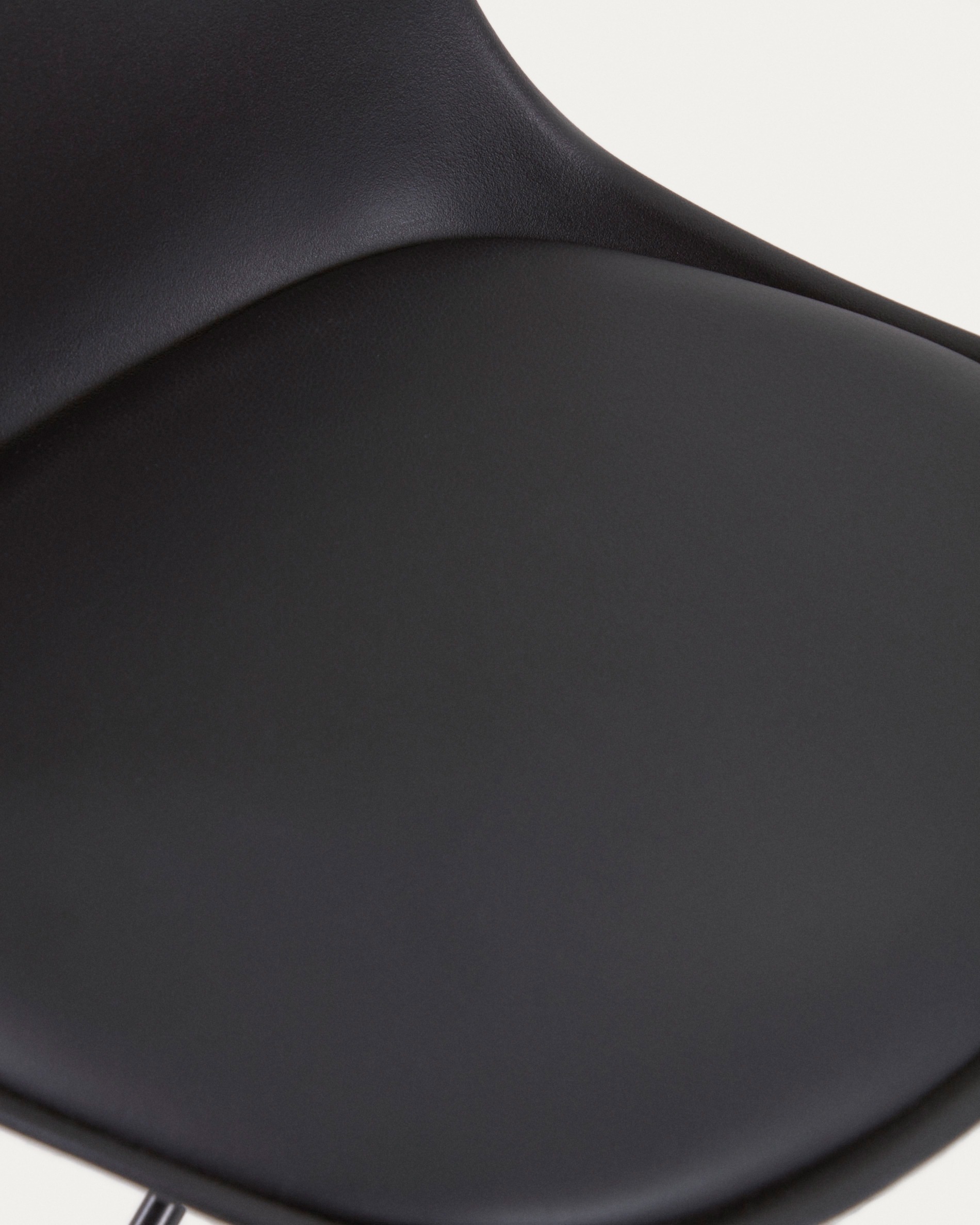 Стул имеет сборную конструкцию, которая состоит из металлической стойки с черным матовым покрытием и сиденья в обивке из кожзама.