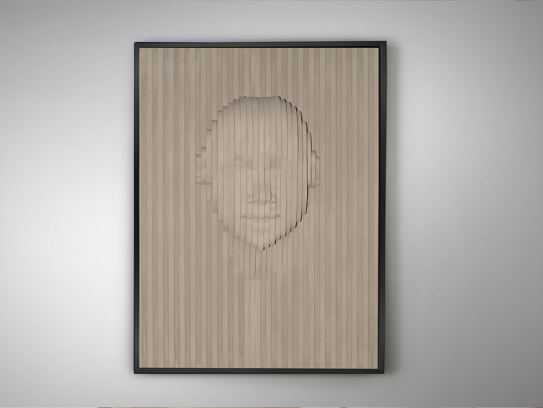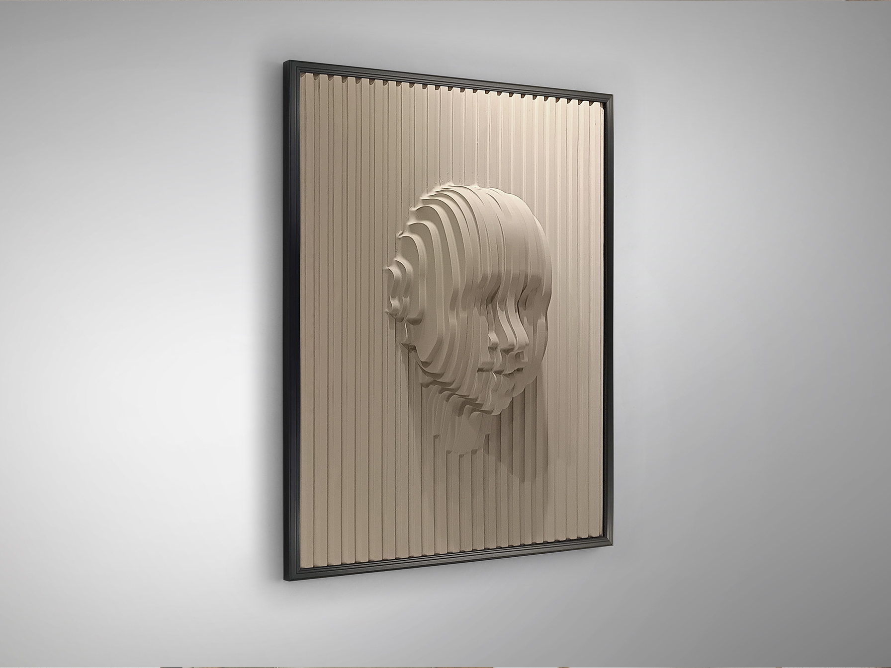 Барельеф из полистирола и МДФ, бежевая отделка. Каркас из черного полистирола