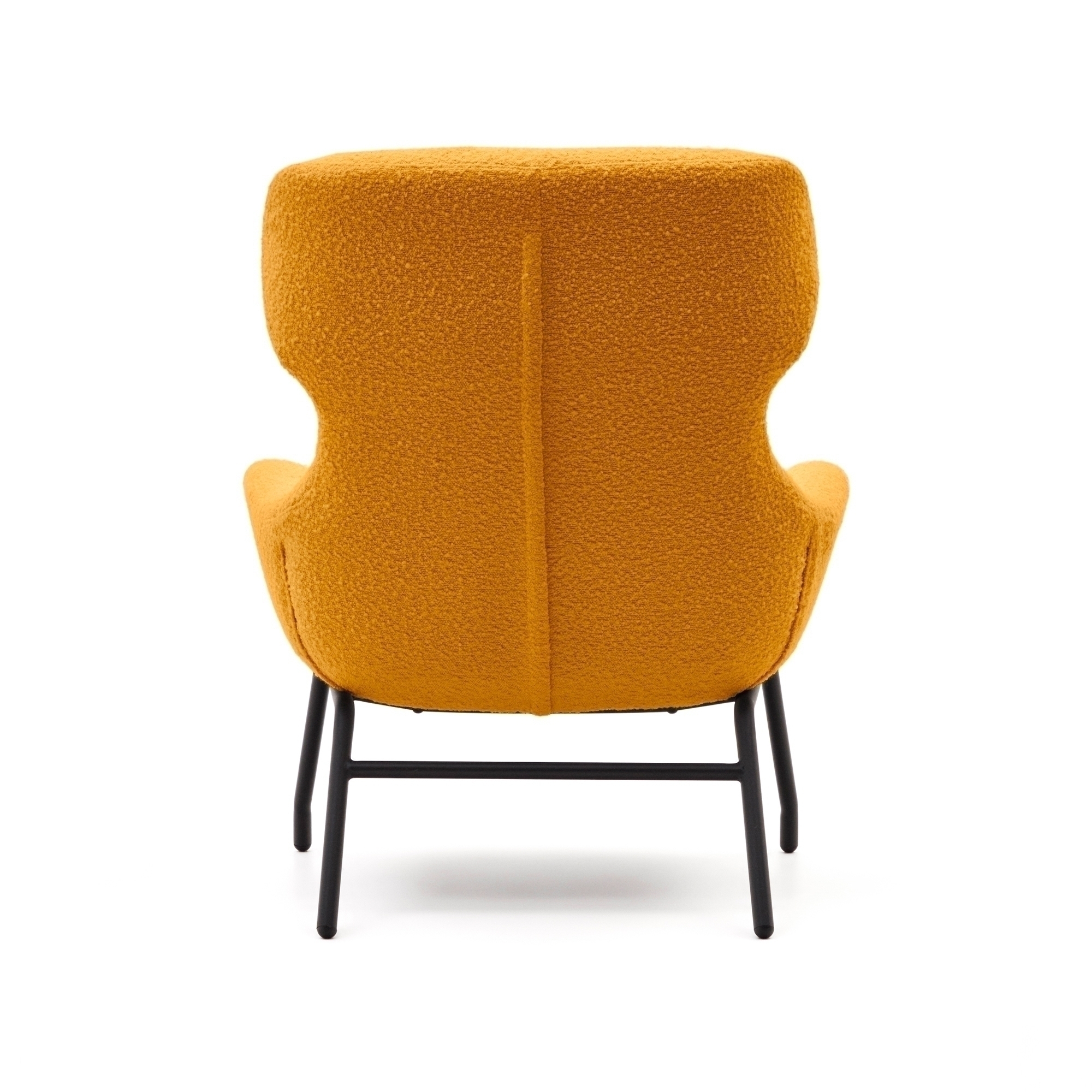 Сиденье имеет фанерный каркас, который смягчен синтетической пеной и обшит тканью букле. Этот материал отличается мягкостью, схожей фактурой с овчиной. Он износостойкий, прочный, легко чистится от загрязнений.
