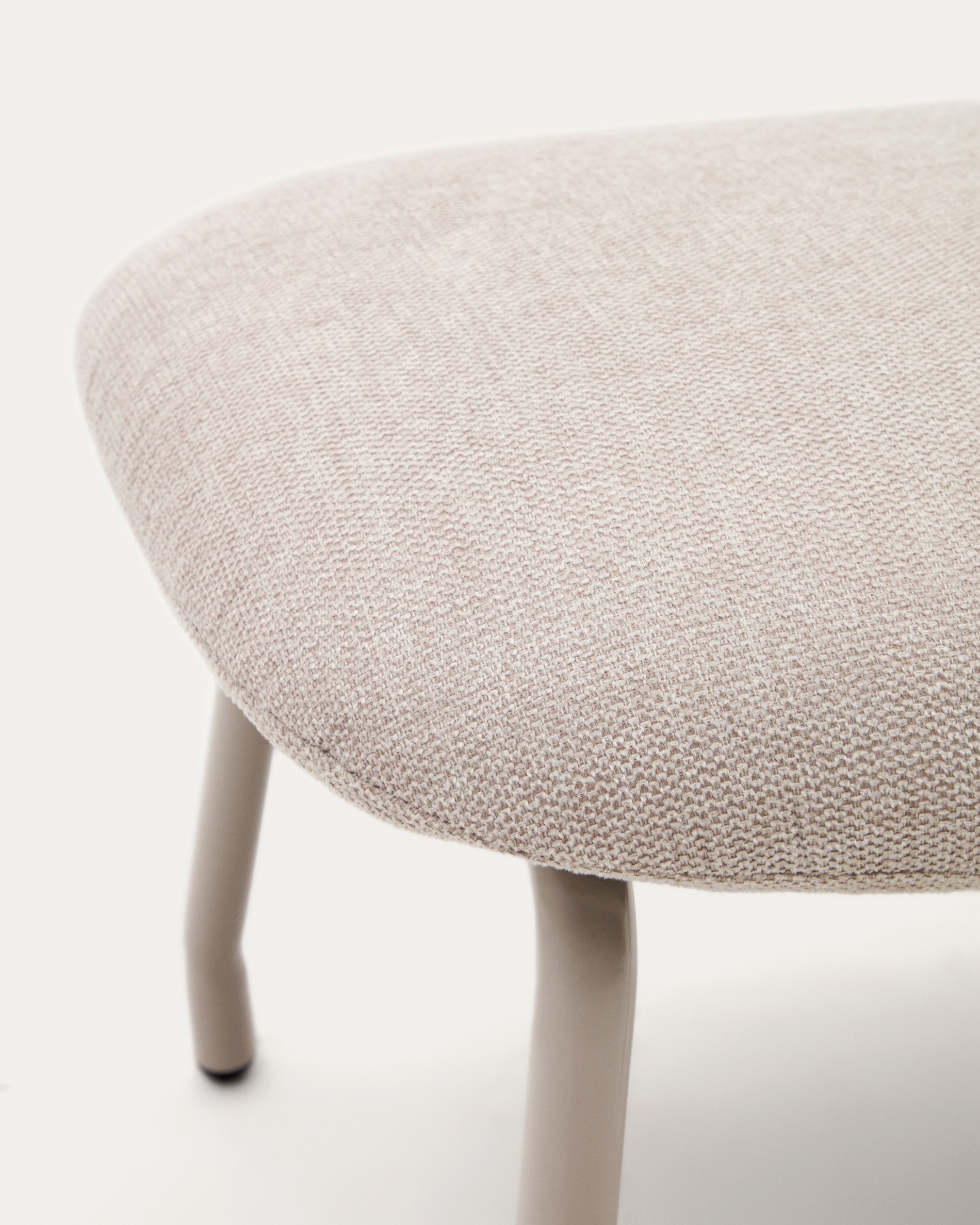 Пуф имеет сборную конструкцию. Ножки сделаны из металла, имеют трубчатую форму с диаметром 2,5 см. Они окрашены в черный или бежевый цвет эмалью, которая защищает металл от негативного воздействия влаги. Цвет покрытия зависит от выбранного вами варианта.