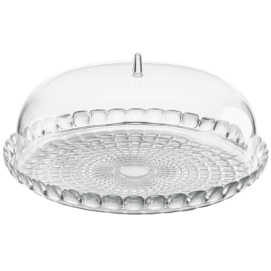 Блюдо сервировочное Tiffany станет украшением повседневного, праздничного стола или уютного чаепития на свежем воздухе. Его можно переворачивать и использовать с двух сторон. Сторона с загнутыми краями идеально подойдет для подачи мягкой выпечки и пирожных, а плоская идеальна для целых тортов и пирогов. Крышка в форме купола защитит продукты от заветривания, пыли и насекомых, что особенно важно во время трапез в саду или на открытой веранде. Рельефная форма в сочетании с прозрачным материалом заставляют поверхность посуды сверкать и переливаться на свету, делая ее центром притяжения взглядов.