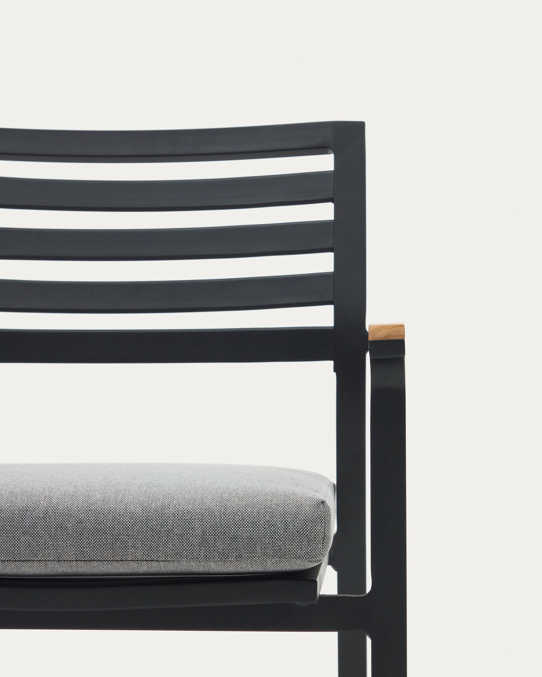 Подлокотники сделаны из древесины тика, поэтому на каждом изделии они имеют свой уникальный тон. Дерево защищено полиуретаном.