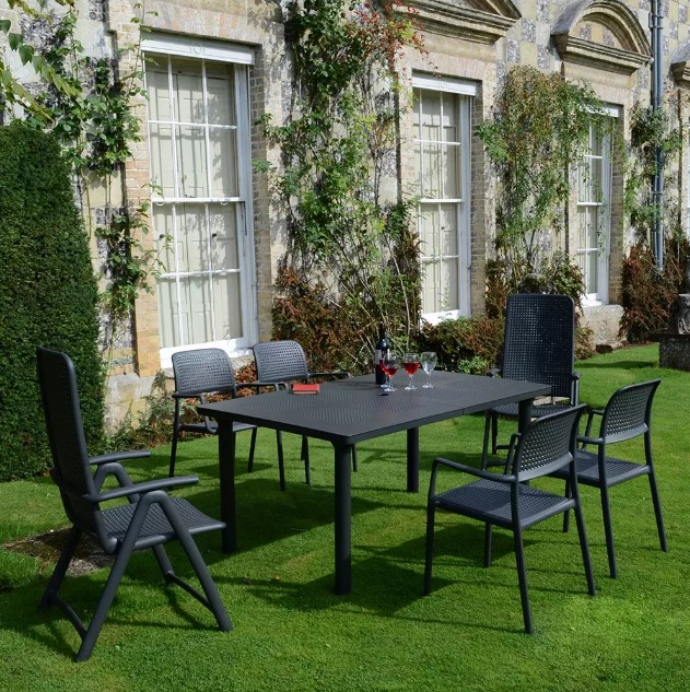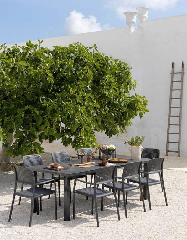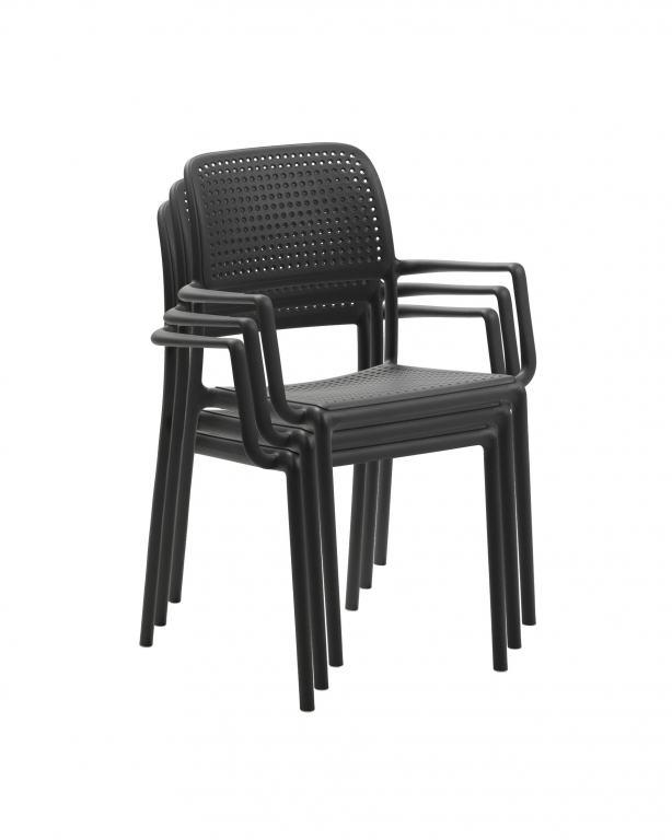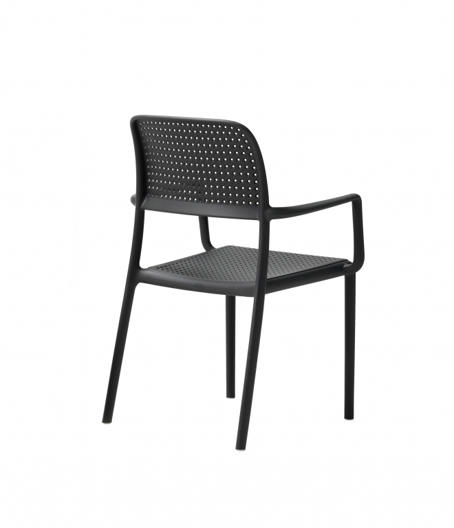 Bora — лаконичное уличное кресло в глубоком антраците, которое собирает пространство вокруг себя и выглядит одинаково уверенно на террасе, балконе и у бассейна. Строгий цвет подчёркивает зелень сада и легко сочетается с деревом, камнем и металлом — от минимализма до уютного «курортного» микса.