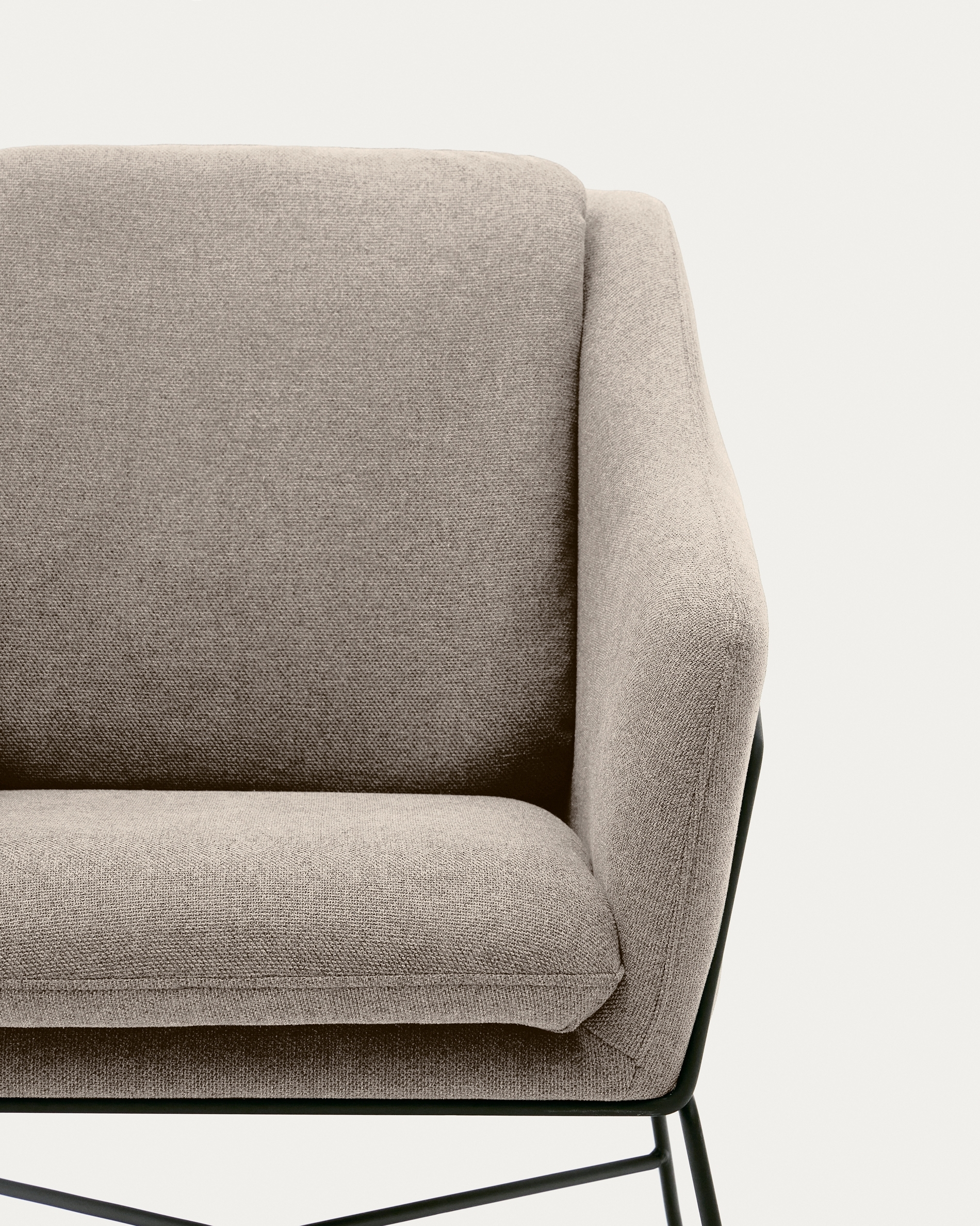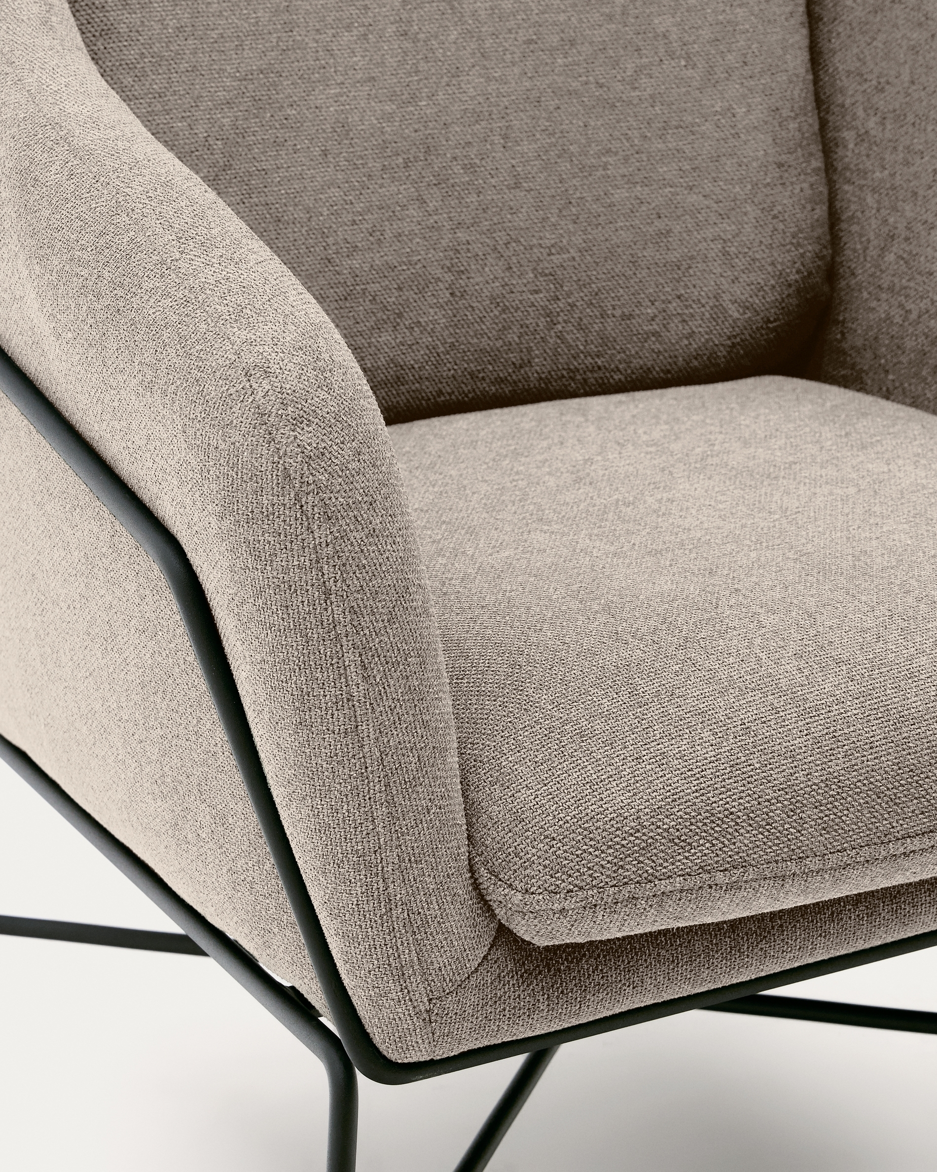 Кресло состоит из металлической основы и цельного каркаса в мягкой тканевой обивке. Основа окрашена в черный матовый цвет методом порошкового нанесения краски. Так обеспечена защита от коррозии, создана идеально гладкая поверхность.
