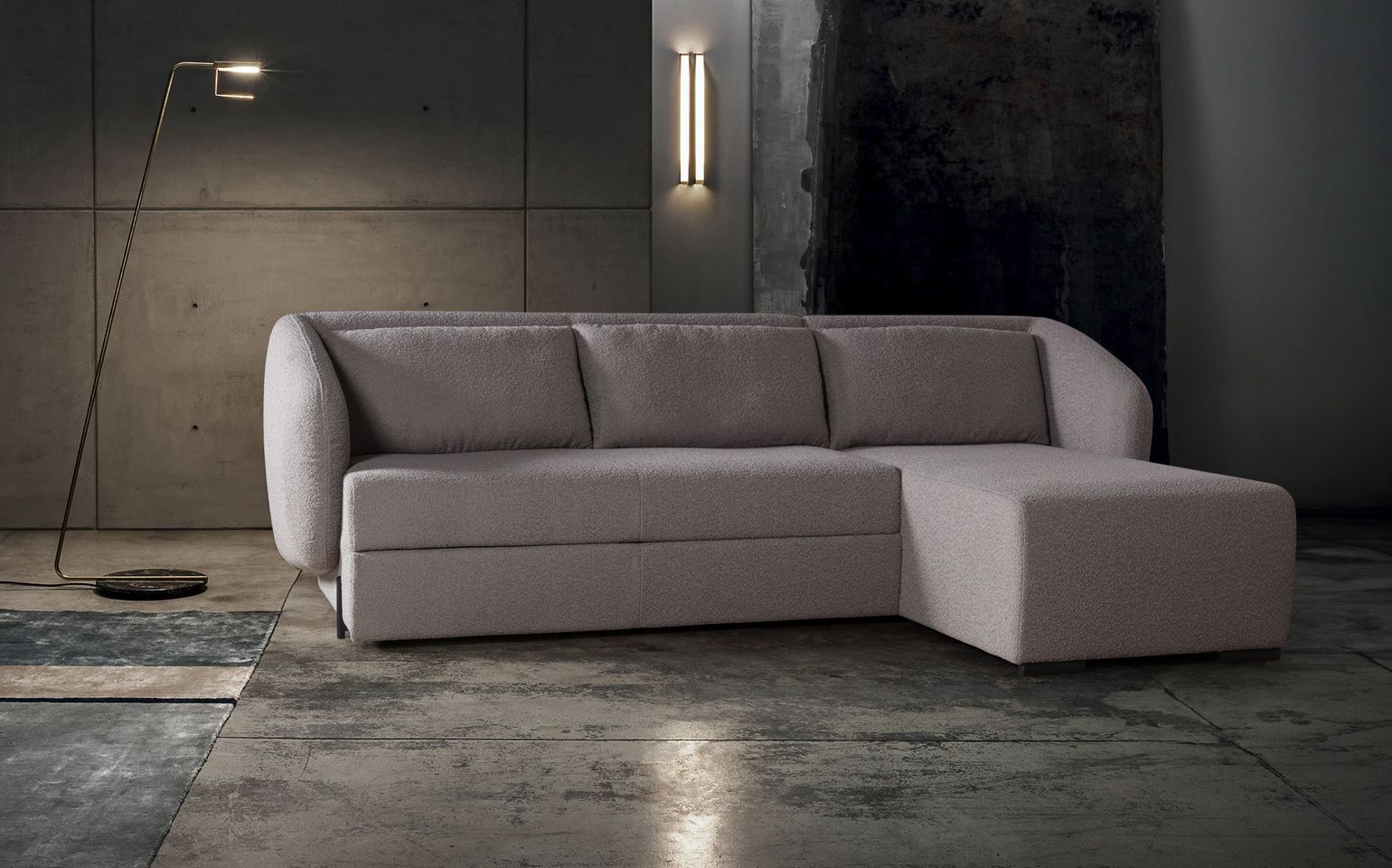 Угловой диван с шезлонгом «Bubble» выглядит воздушным — благодаря изящным металлическим опорам, но внутри него скрыт секрет комфорта: матрас для здорового сна.