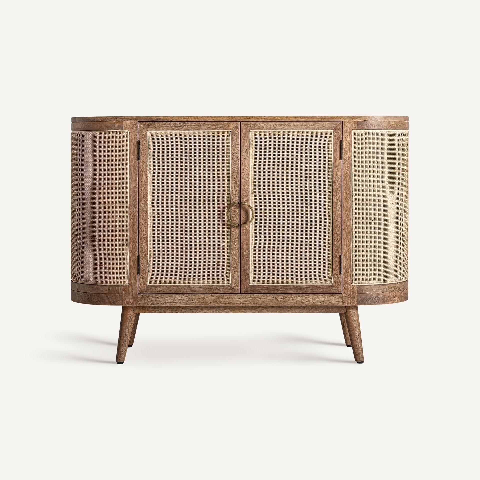 Буфет Beckley, натуральный цвет, скандинавский стиль. Изготовлен из дерева манго и плетения.