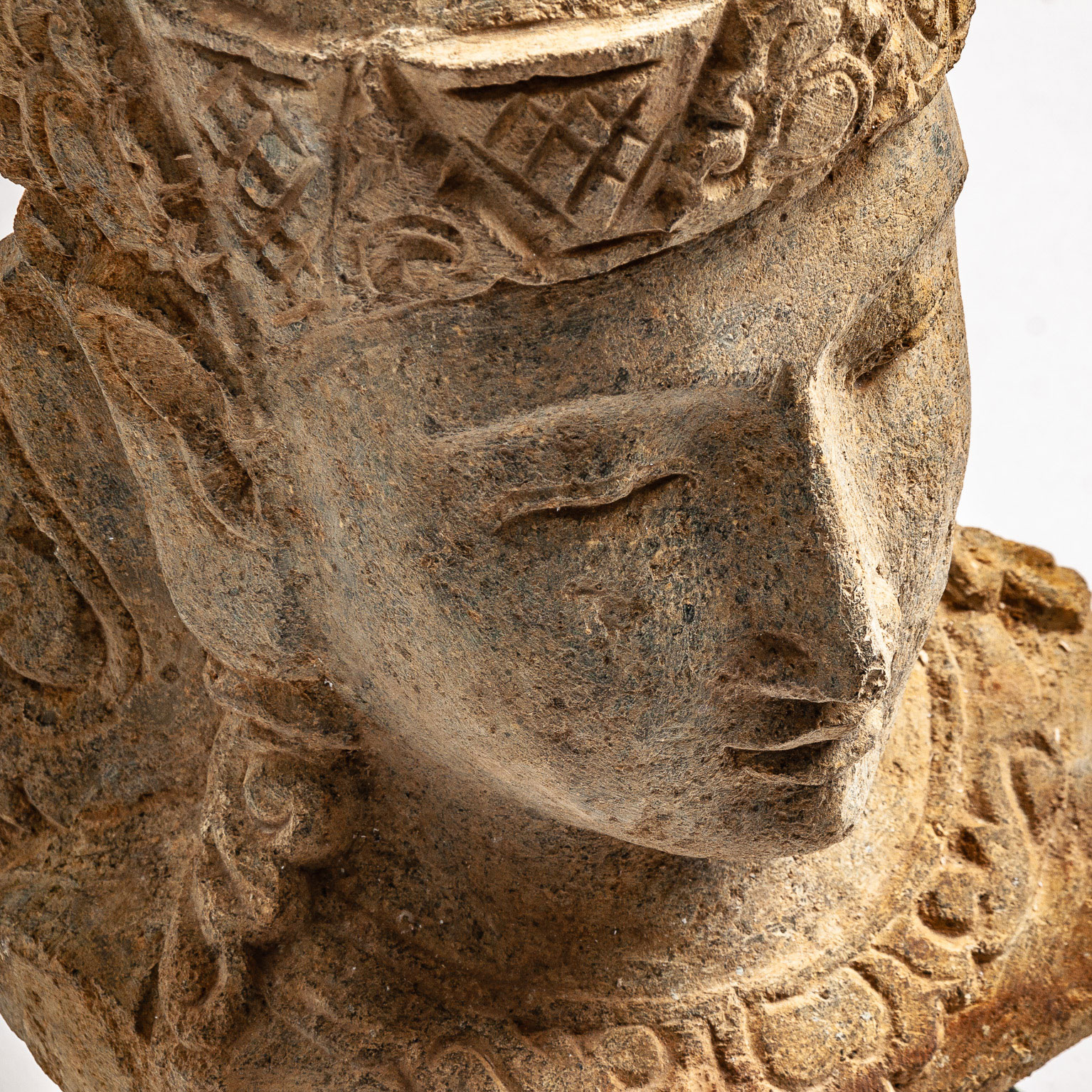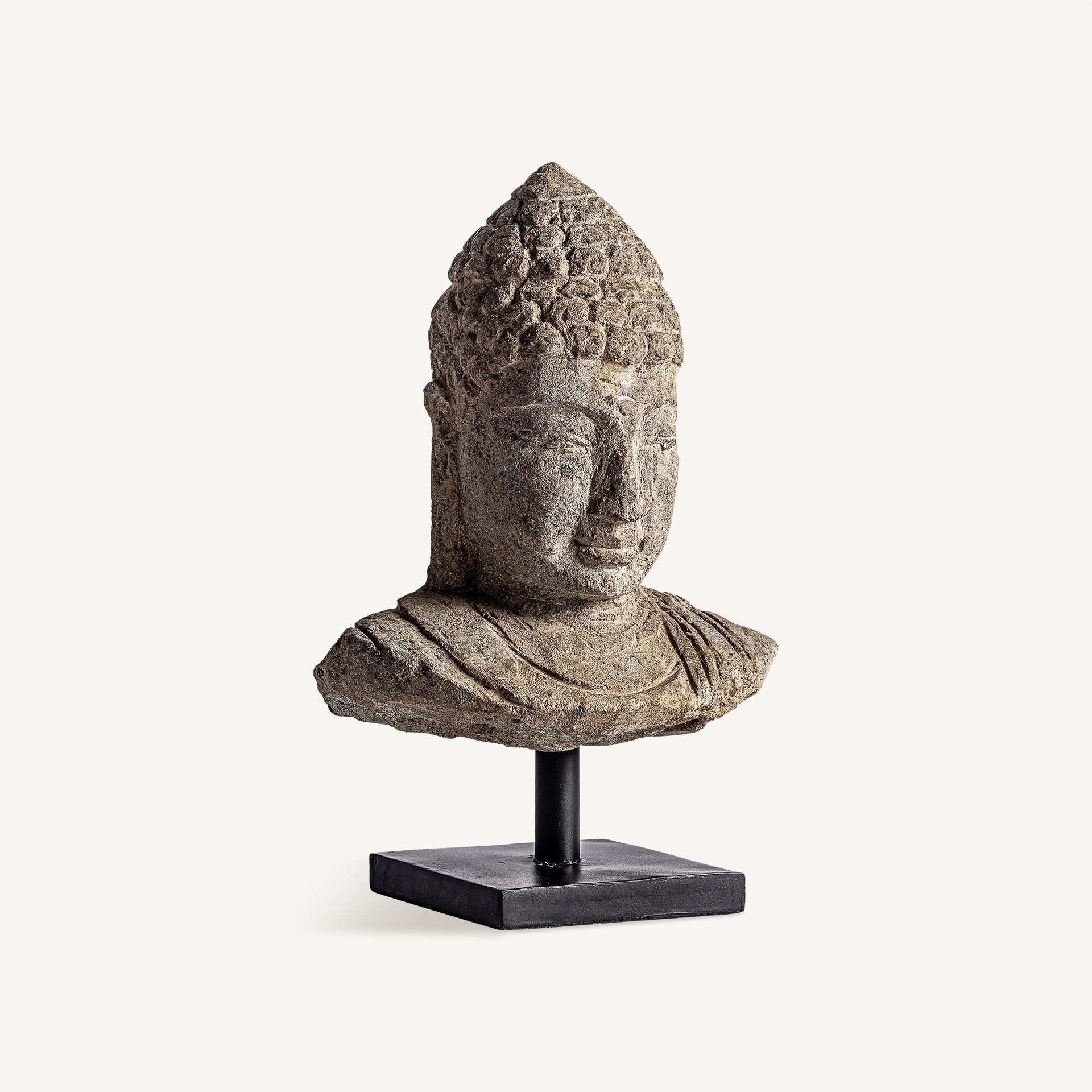 Тайский бюст, выполненный из коричневого камня с состаренной отделкой, — это произведение восточного искусства, воплощающее духовность и силу. VICAL носит на этой скульптуре свой неповторимый фирменный знак.