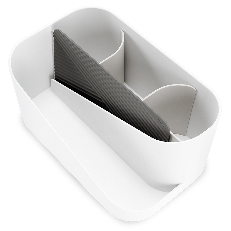 Несколько отделений позволяют организованно размещать предметы разных размеров. В набор входит силиконовый термостойкий коврик для горячих плоек и утюжков. Компактный органайзер не занимает много места в ванной или на туалетном столике.