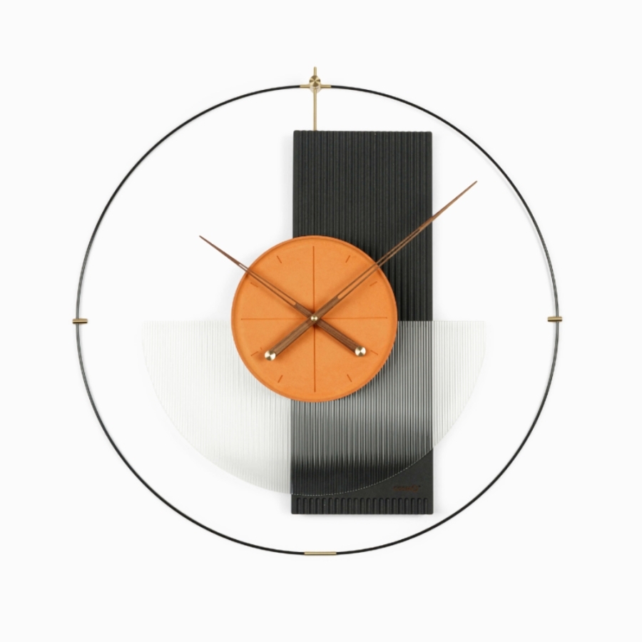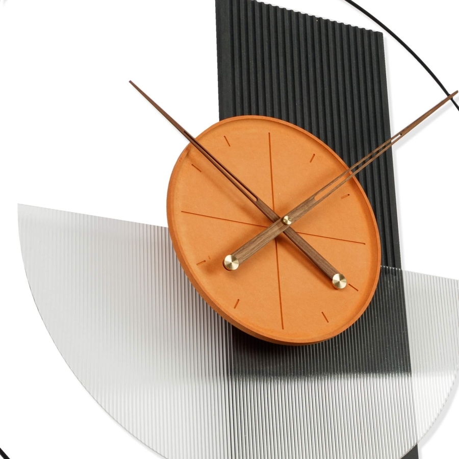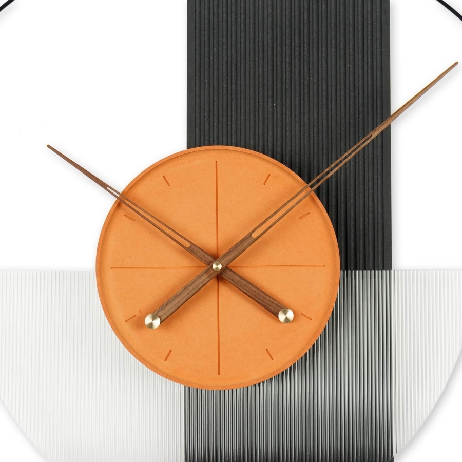 Настенные часы Chrissee с апельсиновой серединой - это яркий акцент в вашем интерьере: Сочетание элементов материала, металла и акрила создает уникальную текстуру и глубину.