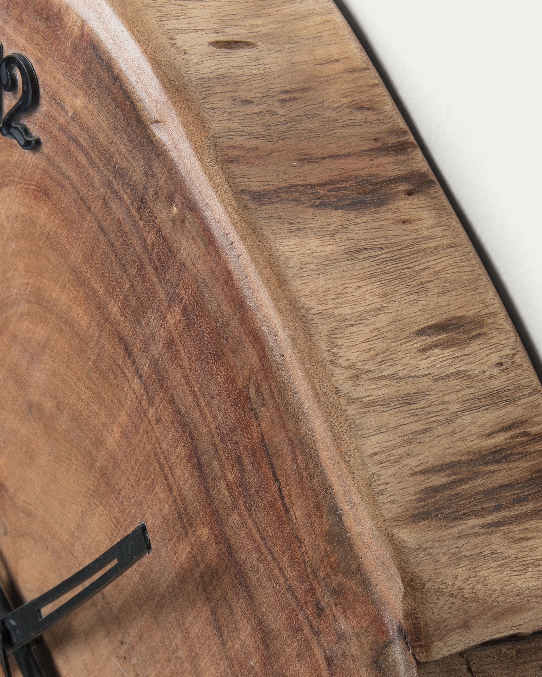 Часы полностью сделаны из массива акации. Древесина на срезе не имеет отделки. Поэтому она демонстрирует естественную красоту, тона и рисунок которой уникальны.