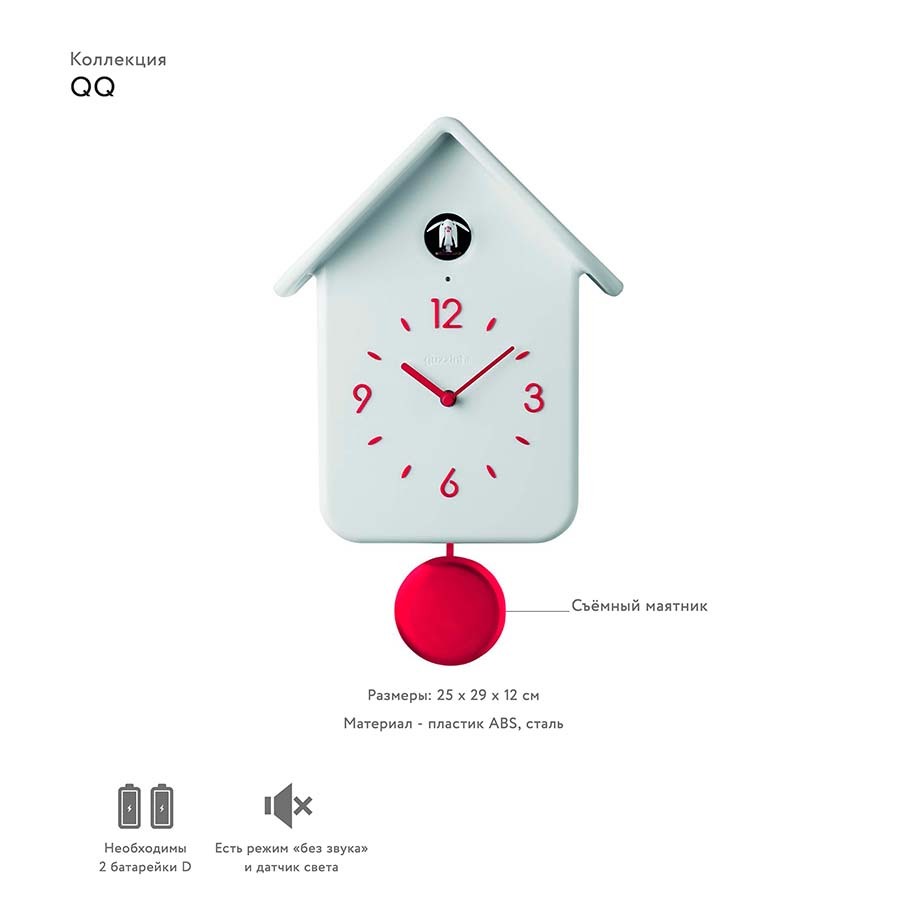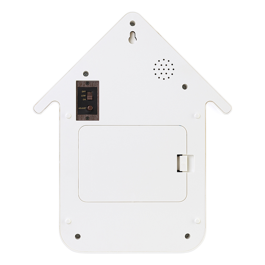 Сказочные механические часы с кукушкой QQ – оригинальное решение в современном интерьере квартиры или загородного дома. На задней панели аксессуара расположены кнопки для регулирования громкости и отключения звука. Часы дополнены специальным датчиком освещенности. Кроме того, кукушка не беспокоит жителей ночью, так как она автоматически отключается в темноте. Часы можно использовать в настольном режиме, для этого достаточно снять маятник.
