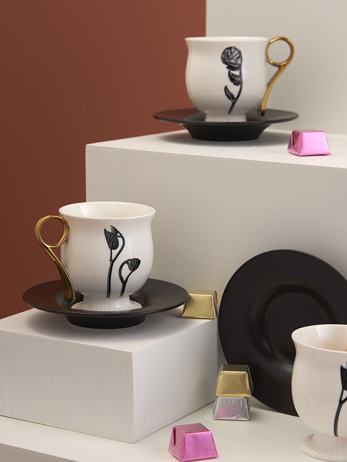 Коллекция Herbaria – союз наследия русского фарфорового завода Батенина и творчества немецкого фотографа-модерниста Карла Блоссфельдта. Батенинский фарфор отличался большим разнообразием форм и богатым декором – часто это были роскошные букеты на вызолоченных поверхностях. Взяв за основу классические формы, мы отошли от пышности оформления и сочетали их с лаконичными ботаническими мотивами. Herbaria – увлекательный диалог не только геометрии и природы, а также двух противоположных художественных стилей: русского ампира первой трети XIX века и немецкого модернизма начала XX.