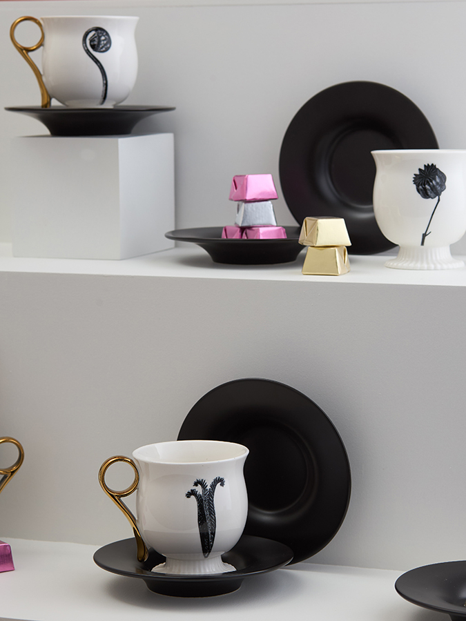 Коллекция Herbaria – союз наследия русского фарфорового завода Батенина и творчества немецкого фотографа-модерниста Карла Блоссфельдта. Батенинский фарфор отличался большим разнообразием форм и богатым декором – часто это были роскошные букеты на вызолоченных поверхностях. Взяв за основу классические формы, мы отошли от пышности оформления и сочетали их с лаконичными ботаническими мотивами. Herbaria – увлекательный диалог не только геометрии и природы, а также двух противоположных художественных стилей: русского ампира первой трети XIX века и немецкого модернизма начала XX.