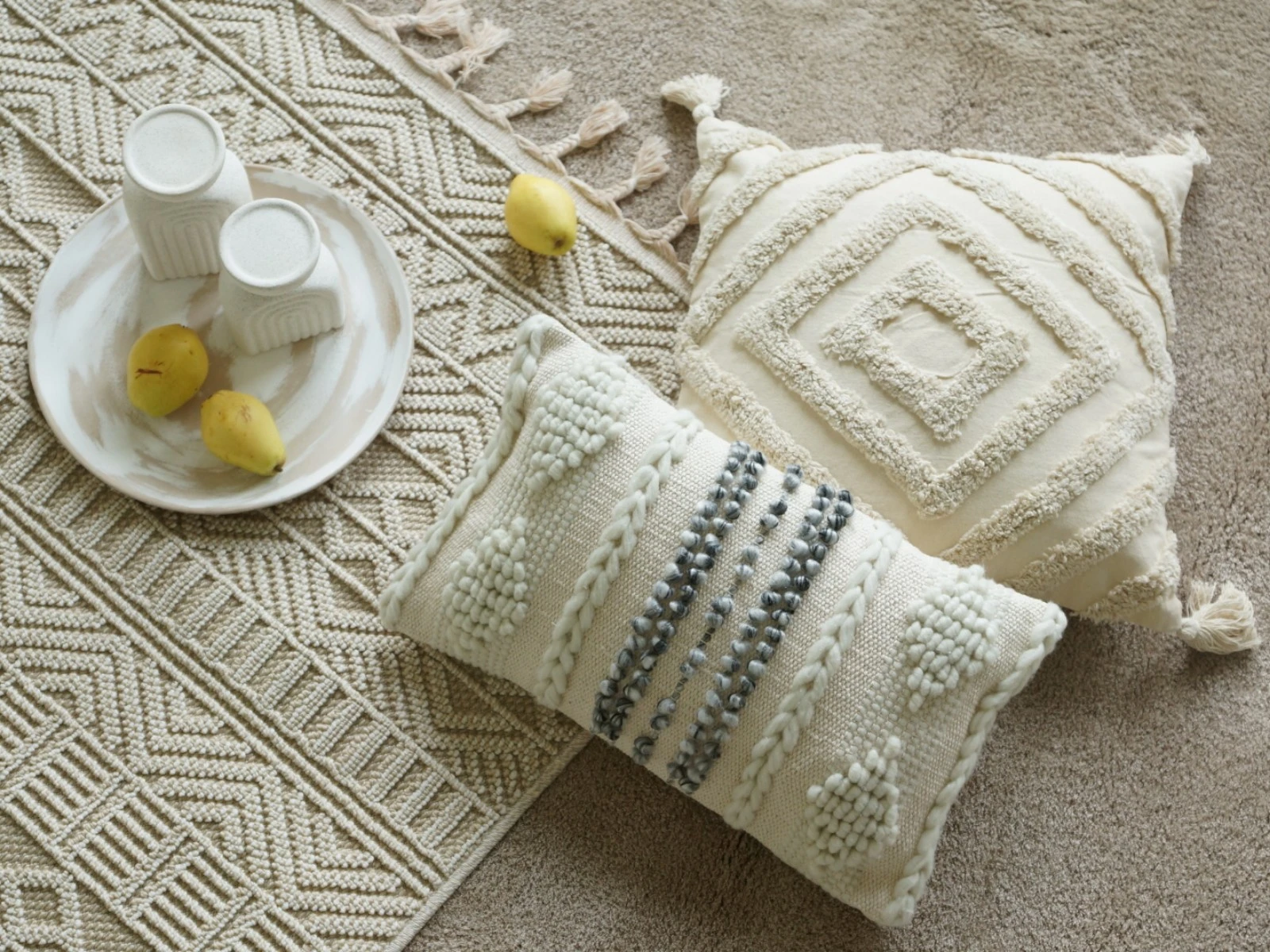 Чехлы для подушек в этническом стиле украсят любой интерьер. Изделия выполнены из 100% экологичного хлопка. Ткань плотная, но при этом нежная и мягкая, не электризуется, не пиллингуется. Чехлы имеют объёмные геометрические и абстрактные узоры, декор в виде бахромы, кистей, вышивки, что придаст пространству многослойность, ритм, ощущение уюта. Модели гармонично сочетаются с другим текстилем благодаря естественной цветовой гамме, они могут быть дополняющими или акцентными элементами.