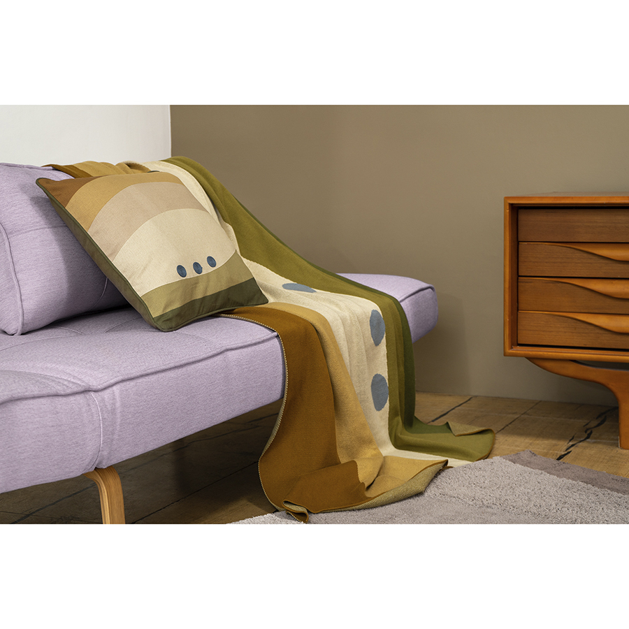 Декоративную подушку можно дополнить пледом с таким же принтом или другим текстилем из коллекции Terra.